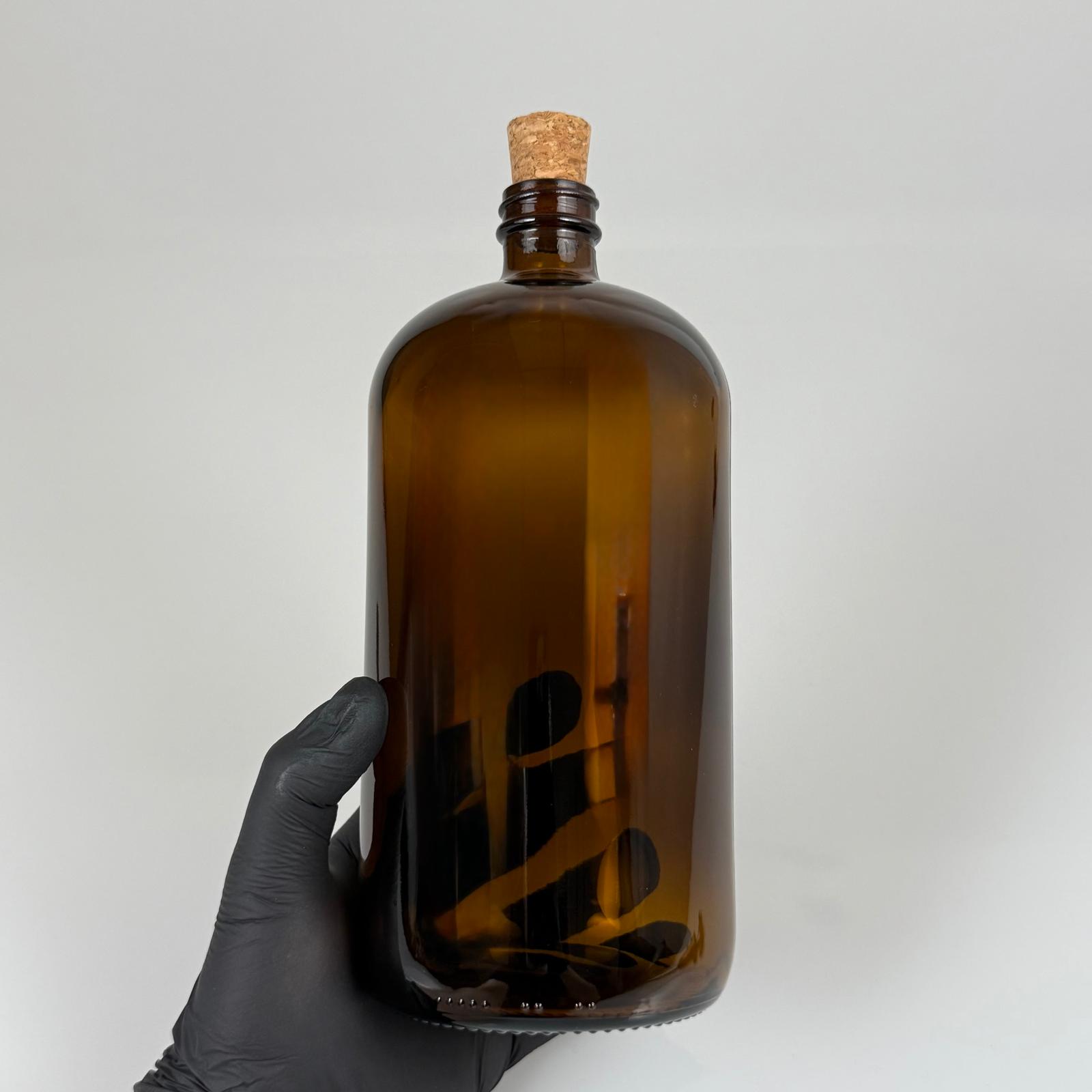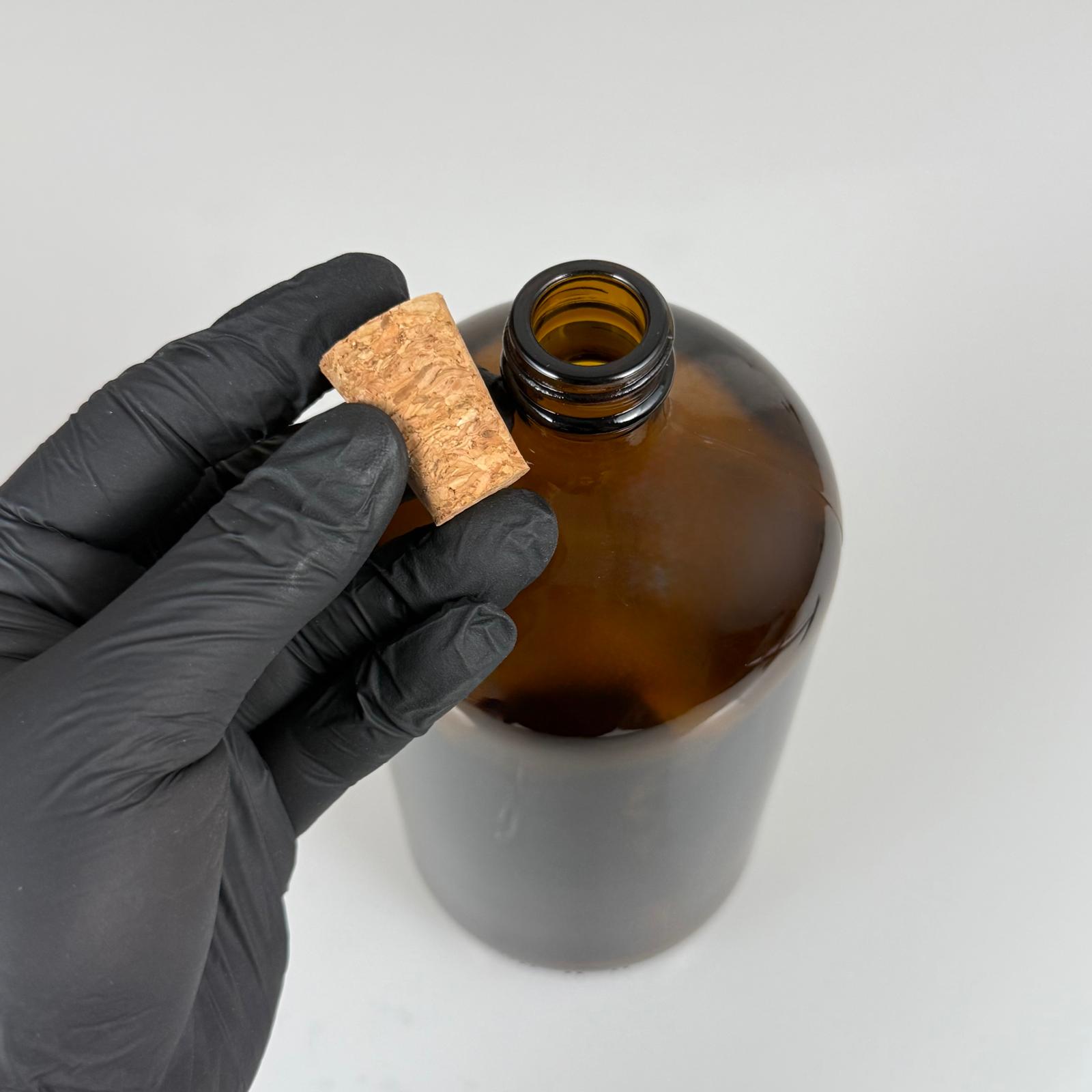 1 LT MANTAR TIPALI CAM ŞİŞE - 1000 CC AMBER KAHVERENGİ CAM ŞİŞE + DOĞAL MANTAR TIPA - 56 adet