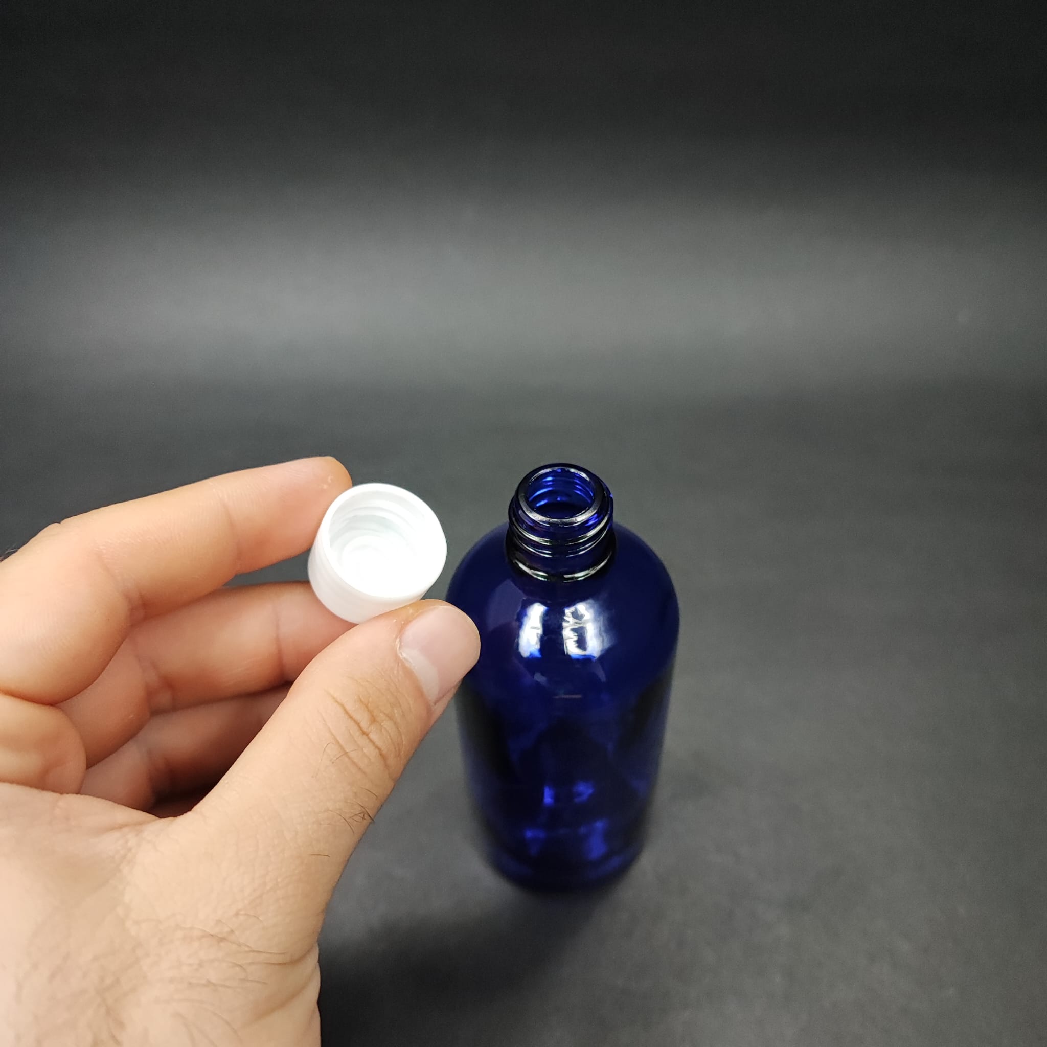 100 CC MAVİ CAM ŞİŞE + KENDİNDEN CONTALI SIZDIRMAZ BEYAZ KAPAK - 100 ML KAPAKLI CAM ŞİŞE - 70 adet