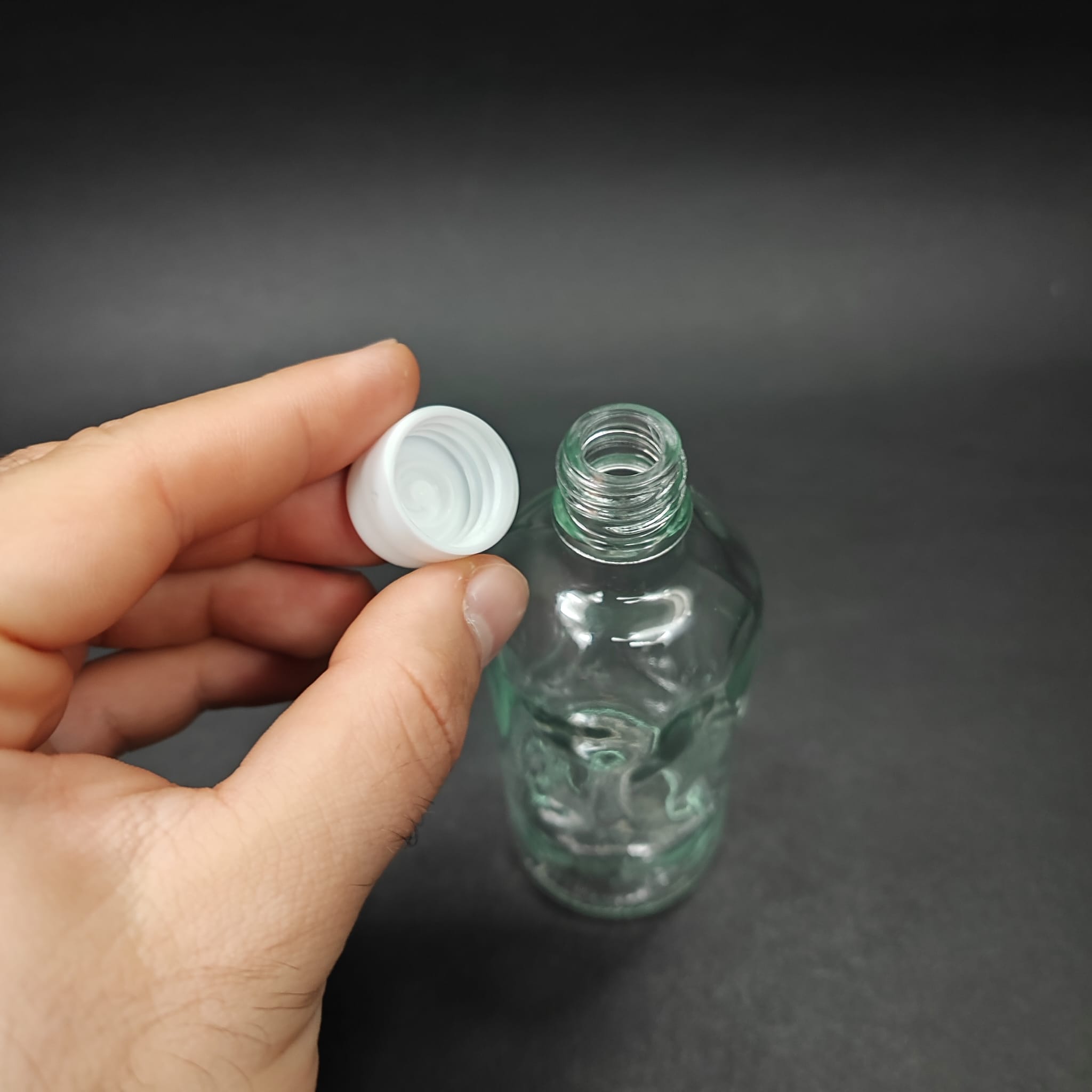 100 CC ŞEFFAF CAM ŞİŞE + KENDİNDEN CONTALI SIZDIRMAZ BEYAZ KAPAK - 100 ML KAPAKLI CAM ŞİŞE - 196 adet