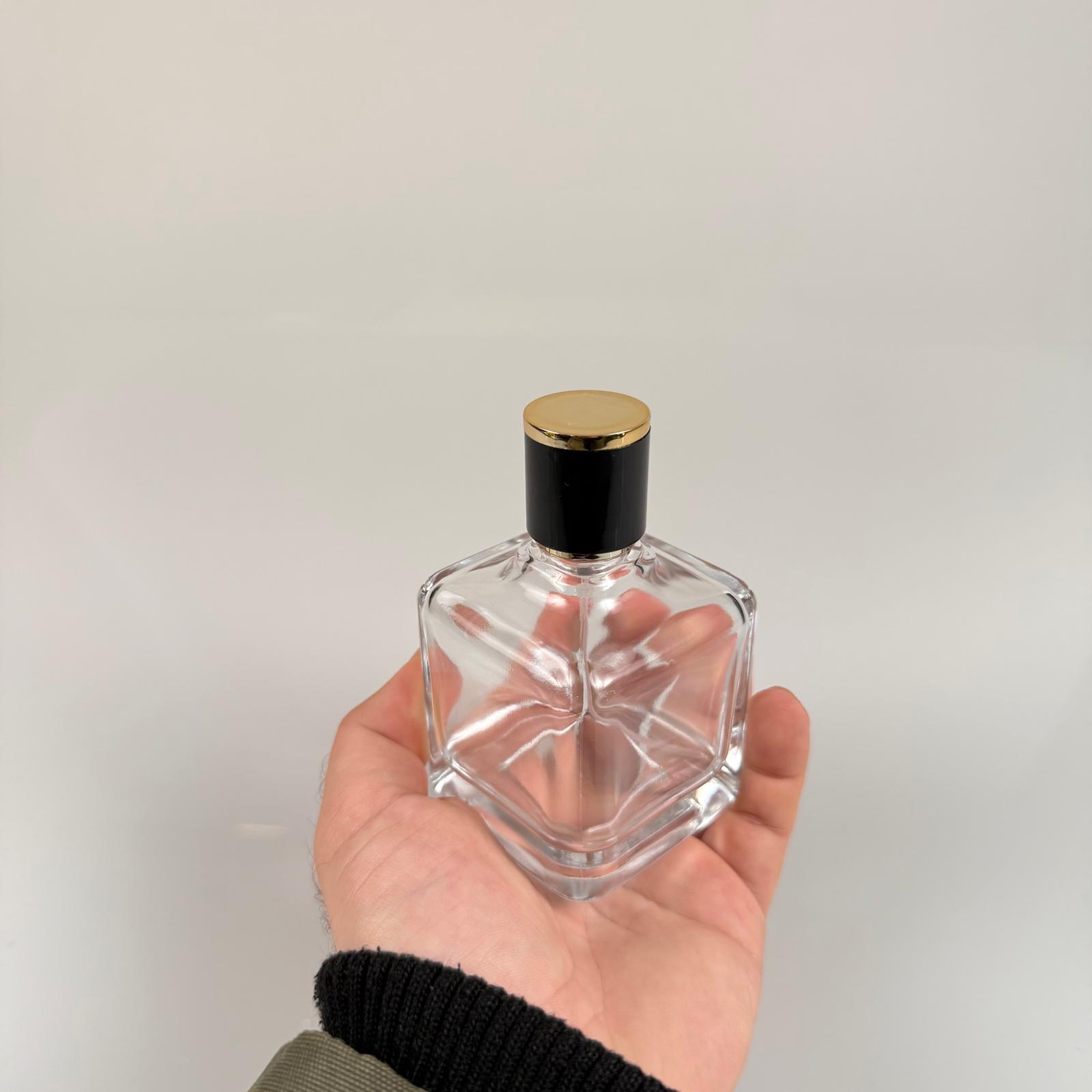 100 ML KARE MODEL LURA PARFÜM ŞİŞESİ - GÜMÜŞ METAL SPREYLİ + GOLD SİYAH KAPAKLI (AĞIZ 15 MM GEÇME KOLAY KAPAMA) - 40 adet
