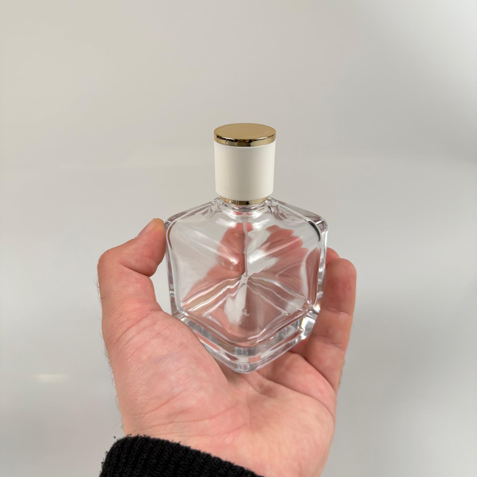 100 ML KARE MODEL LURA PARFÜM ŞİŞESİ - SİYAH METAL SPREYLİ + GOLD BEYAZ KAPAKLI (AĞIZ 15 MM GEÇME KOLAY KAPAMA) - 40 adet