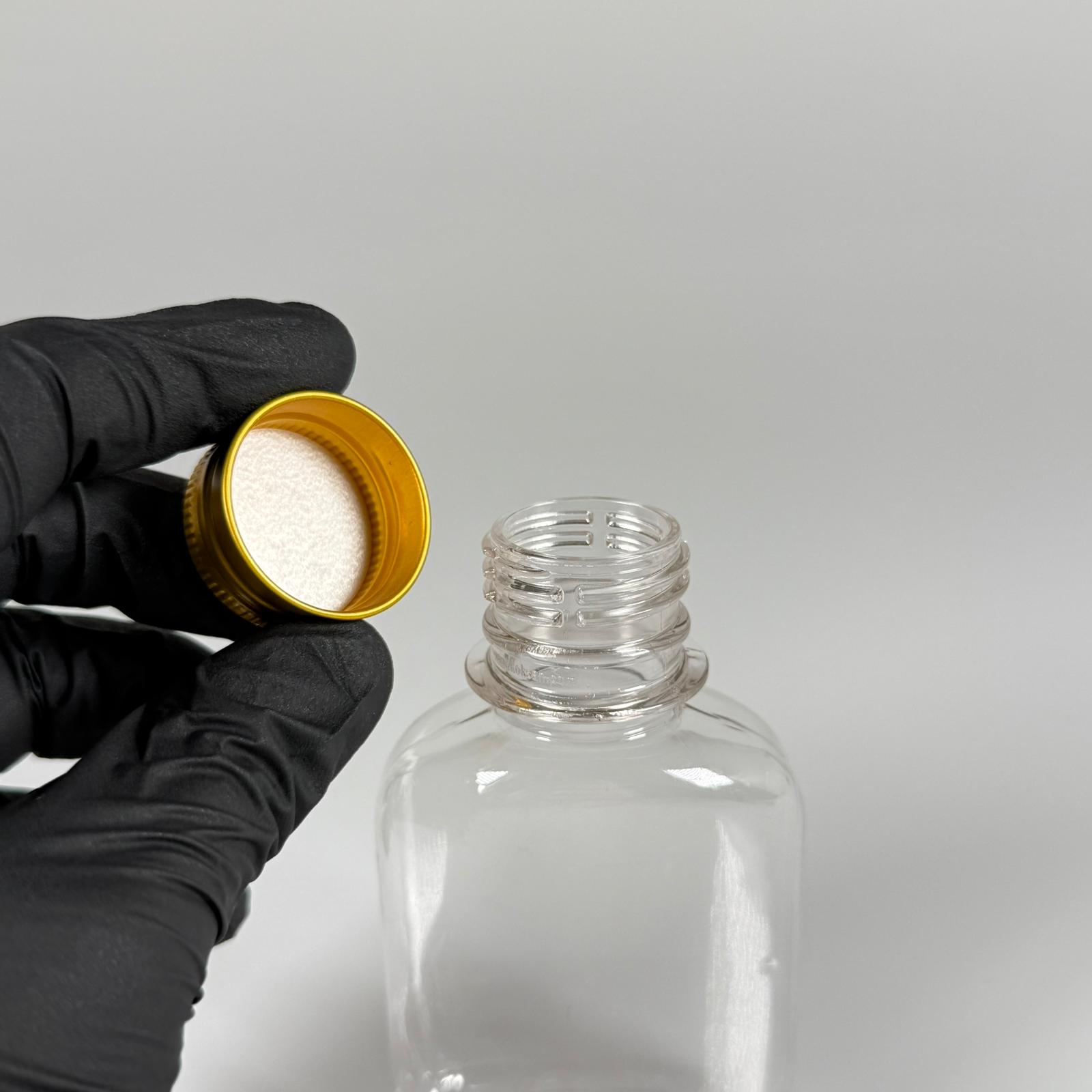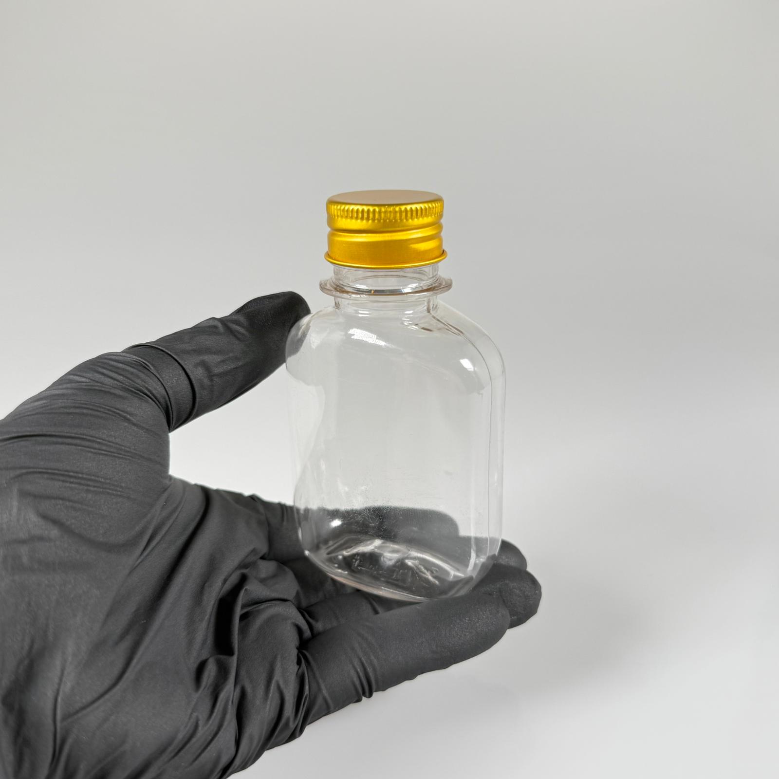 100 ML YASSI METAL KAPAKLI PET ŞİŞE - 100 CC CONTALI GOLD ALÜMİNYUM KAPAKLI PLASTİK ŞİŞE - 1000 adet