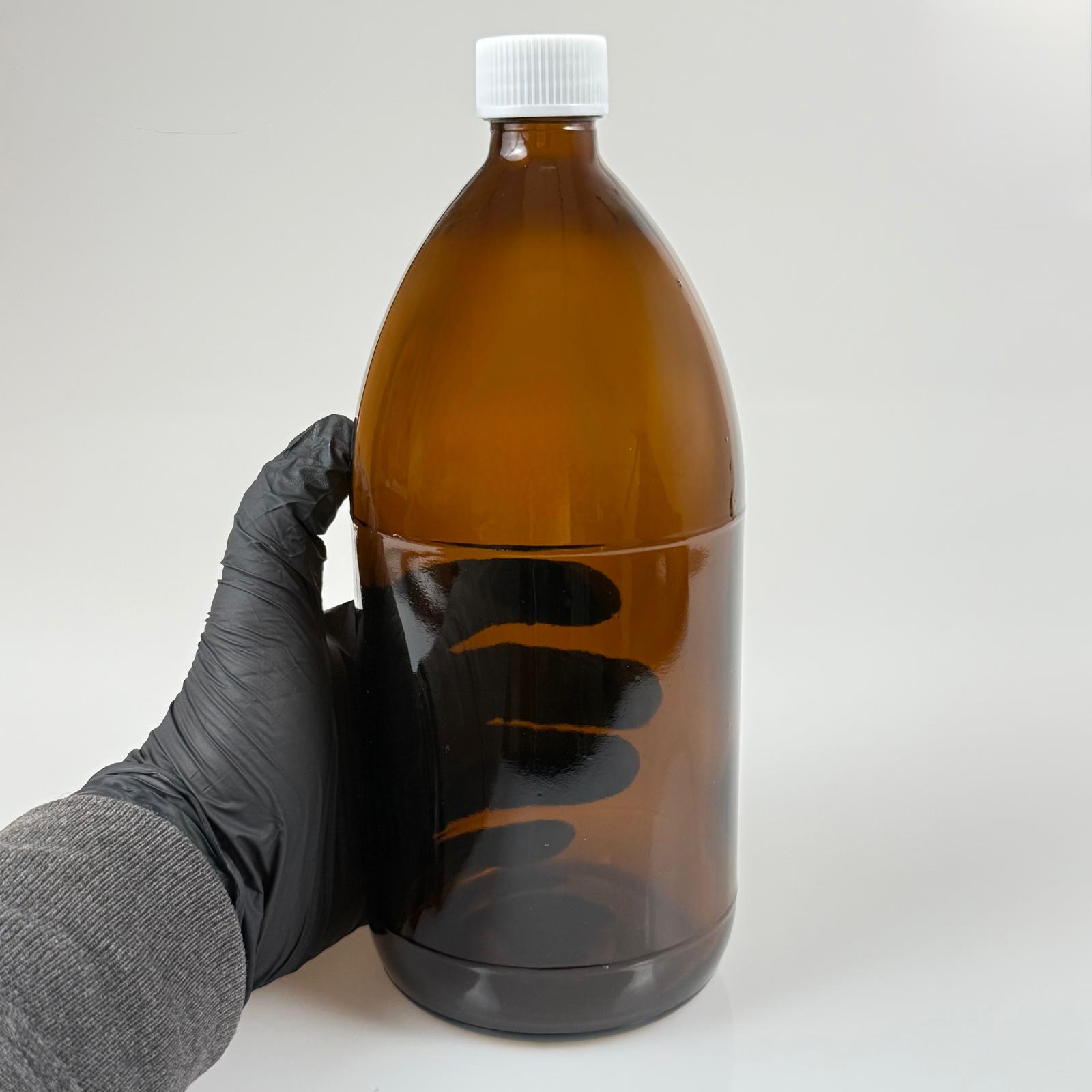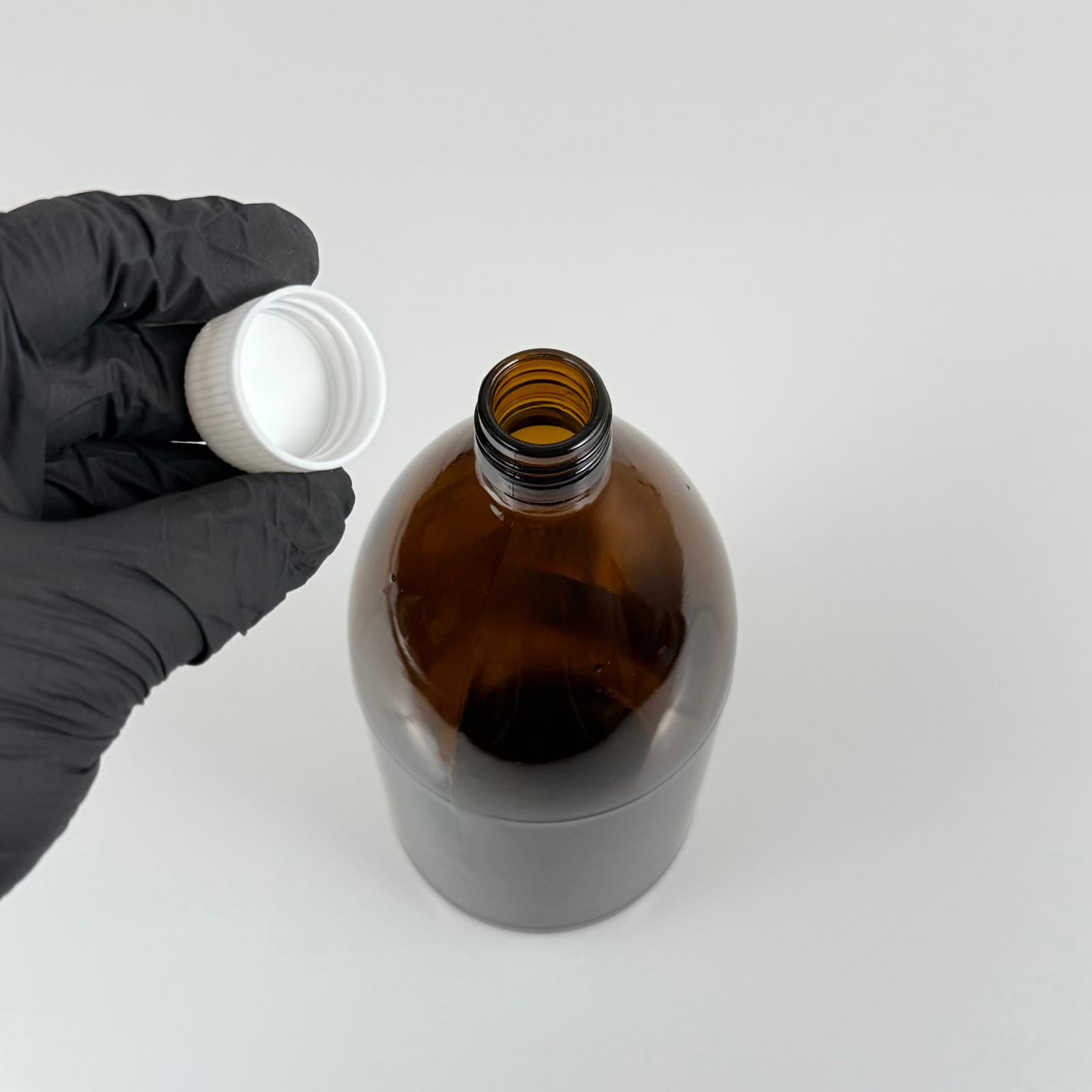 1000 CC AMBER TOMBUL ÖZEL SERİ CAM ŞİŞE - CONTALI BEYAZ KAPAKLI - 1000 ML CAM ECZA ŞİŞESİ - KAHVERENGİ - 56 adet