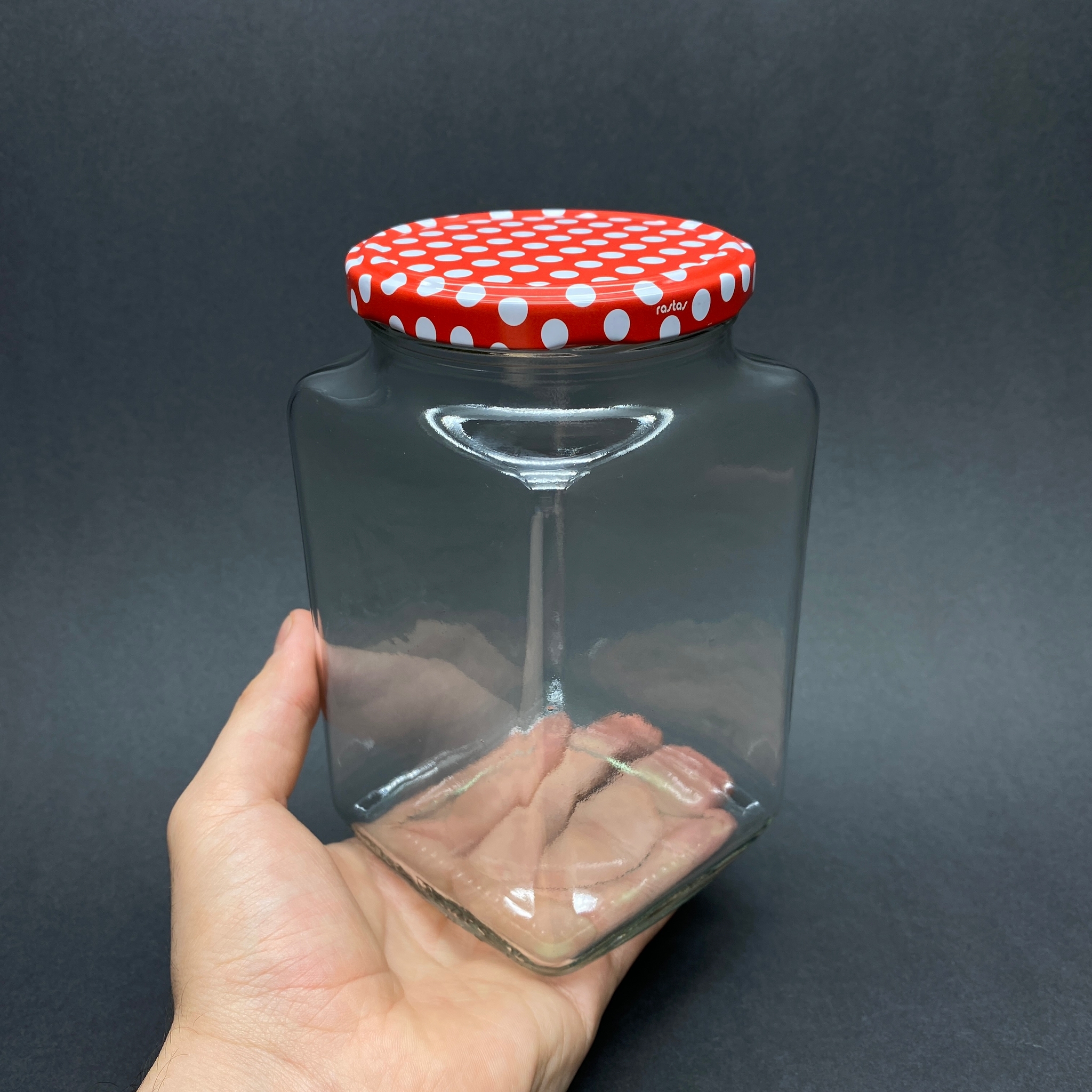 1000 CC CAM KARE KAVANOZ - PUANTİYELİ METAL KAPAKLI - 1 LİTRE KÖŞELİ CAM KAVANOZ - 24 adet