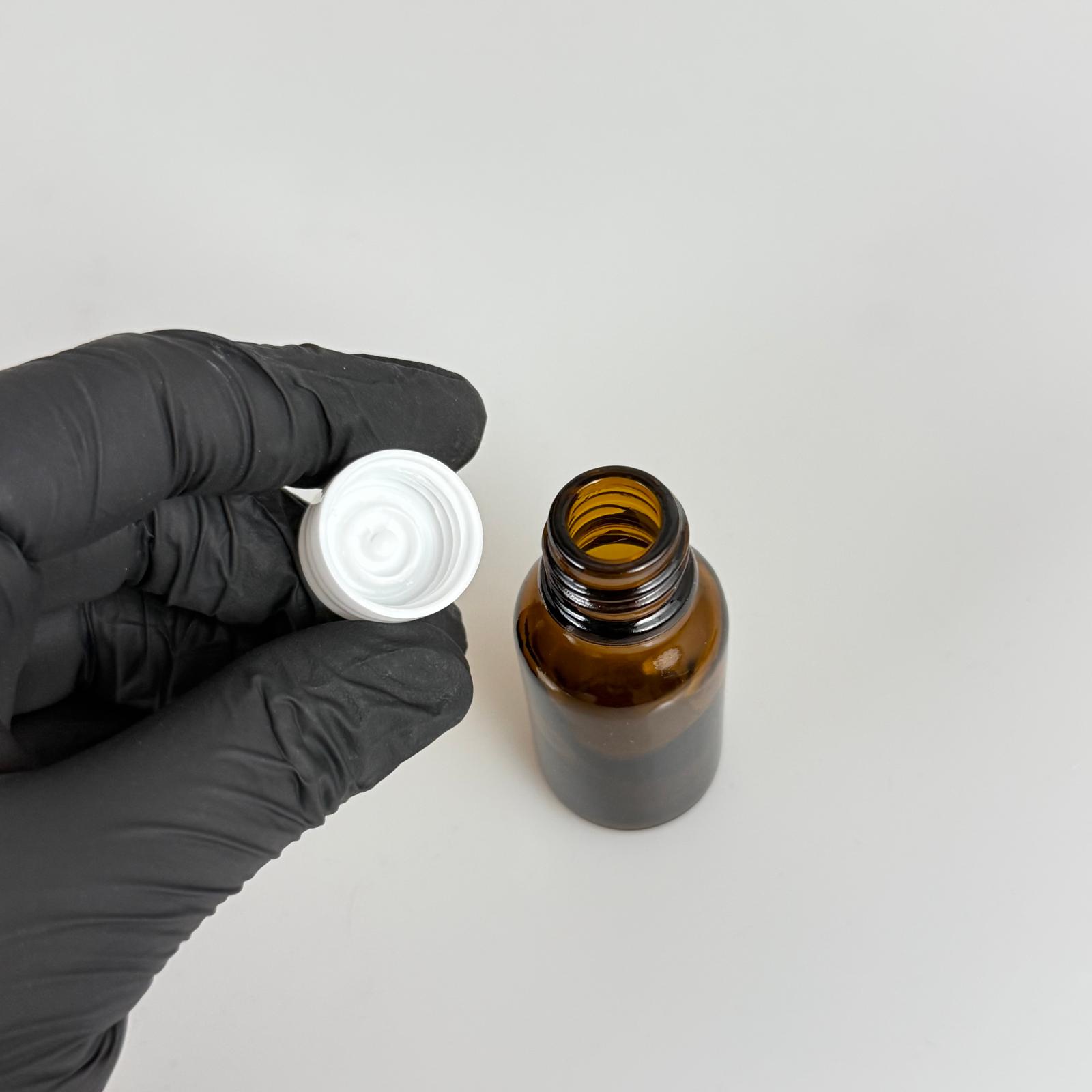 15 ML AMBER CAM ŞİŞE + CONTALI BEYAZ KAPAK - 15 CC KAPAKLI CAM ŞİŞE - 468 adet