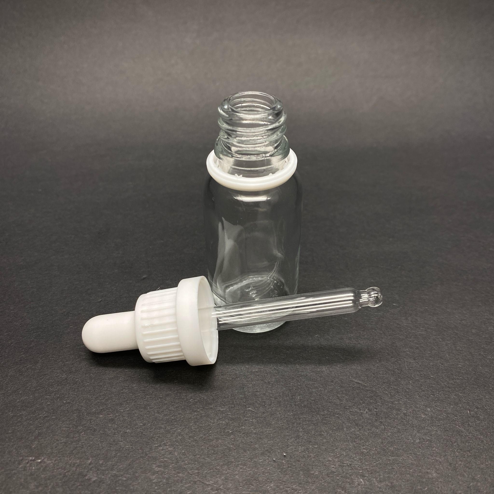 20 CC ŞEFFAF CAM DAMLALIKLI ŞİŞE - BEYAZ EMZİK - BEYAZ KİLİTLİ PLASTİK KAPAK - 20 ML SAYDAM CAM DAMLALIKLI ŞİŞE - 312 adet