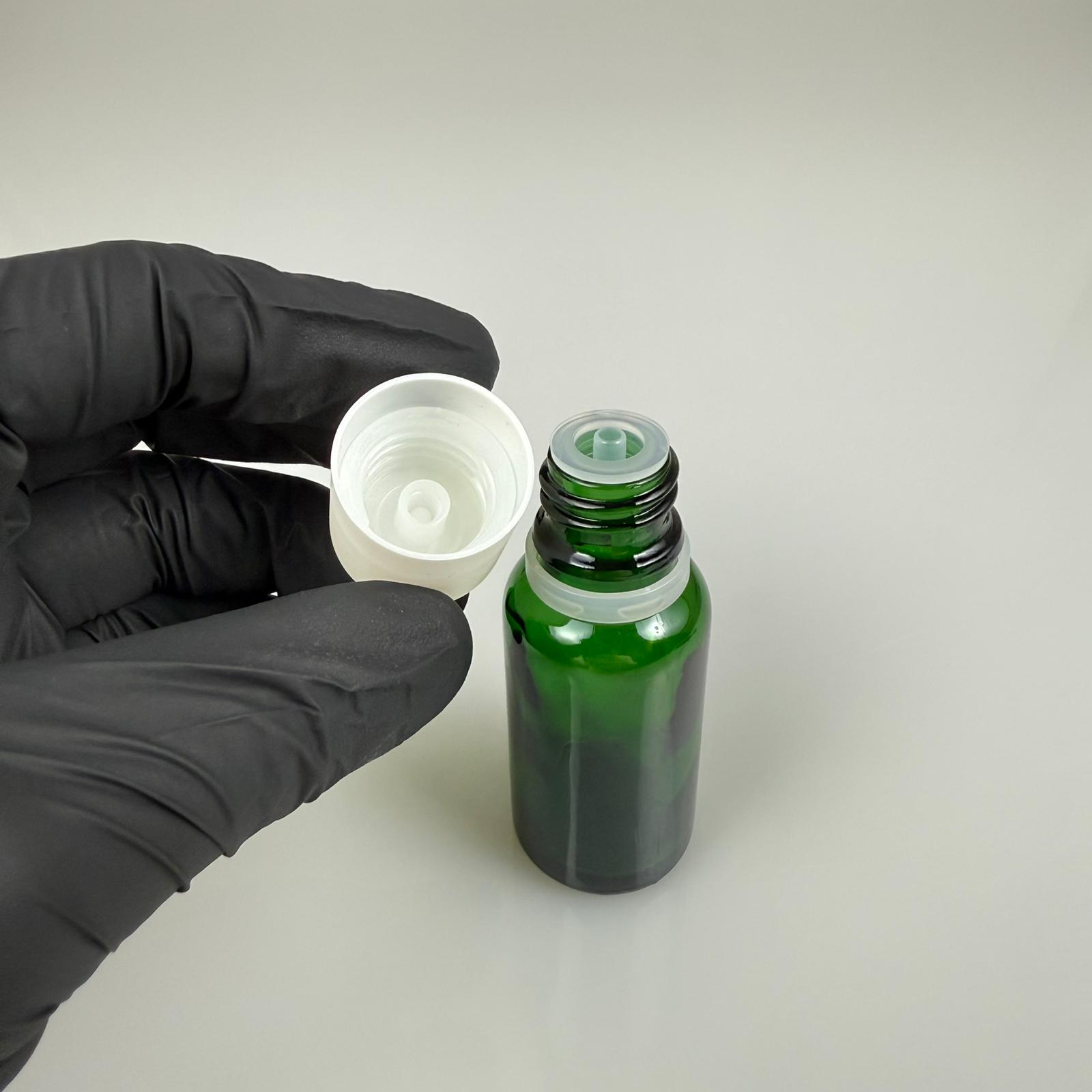 20 CC YEŞİL CAM ŞİŞE + İÇTEN DAMLALIKLI ÇOCUK KİLİTLİ BEYAZ KAPAK - YEŞİL 20 ML KİLİT KAPAKLI DAMLATMALI ŞİŞE - 156 adet