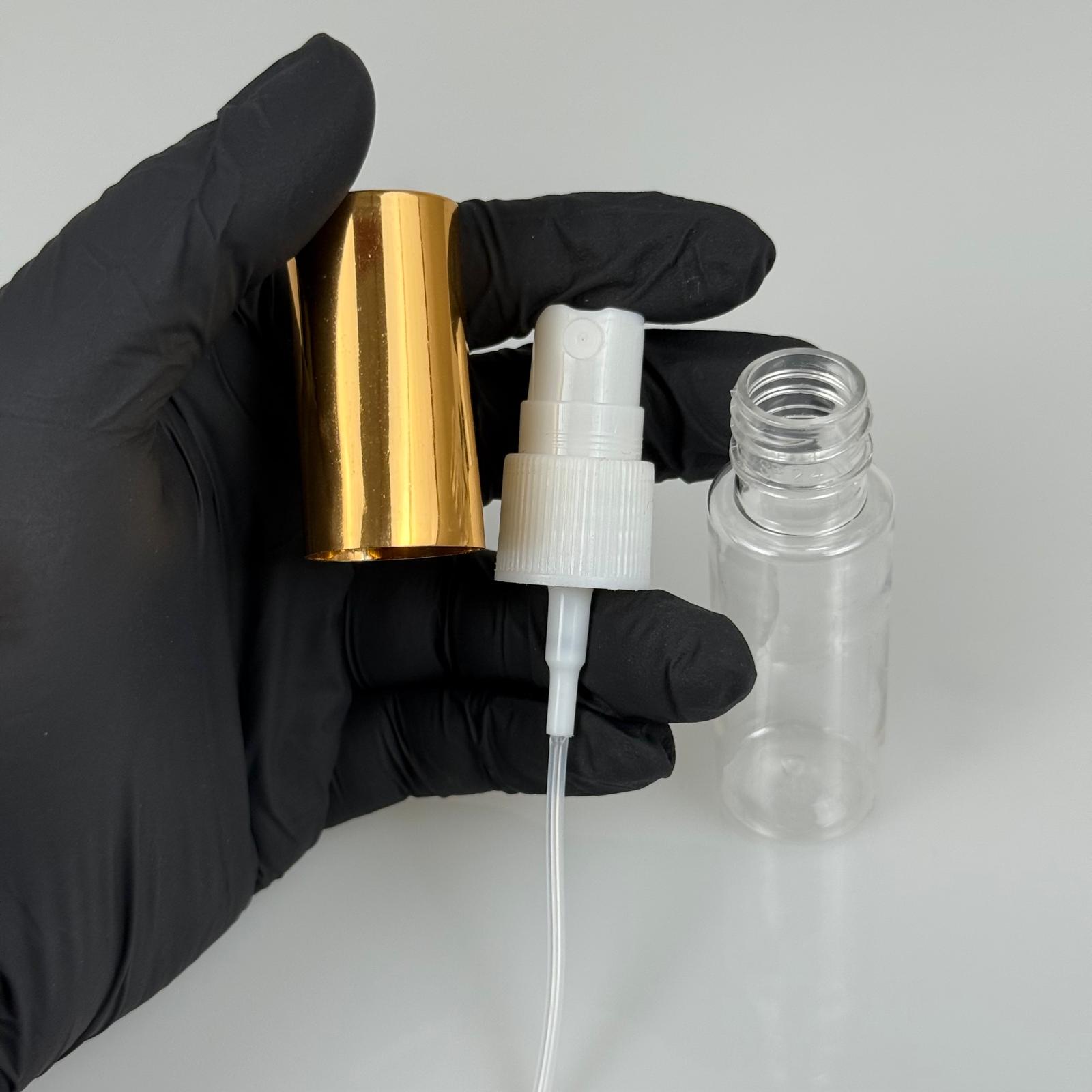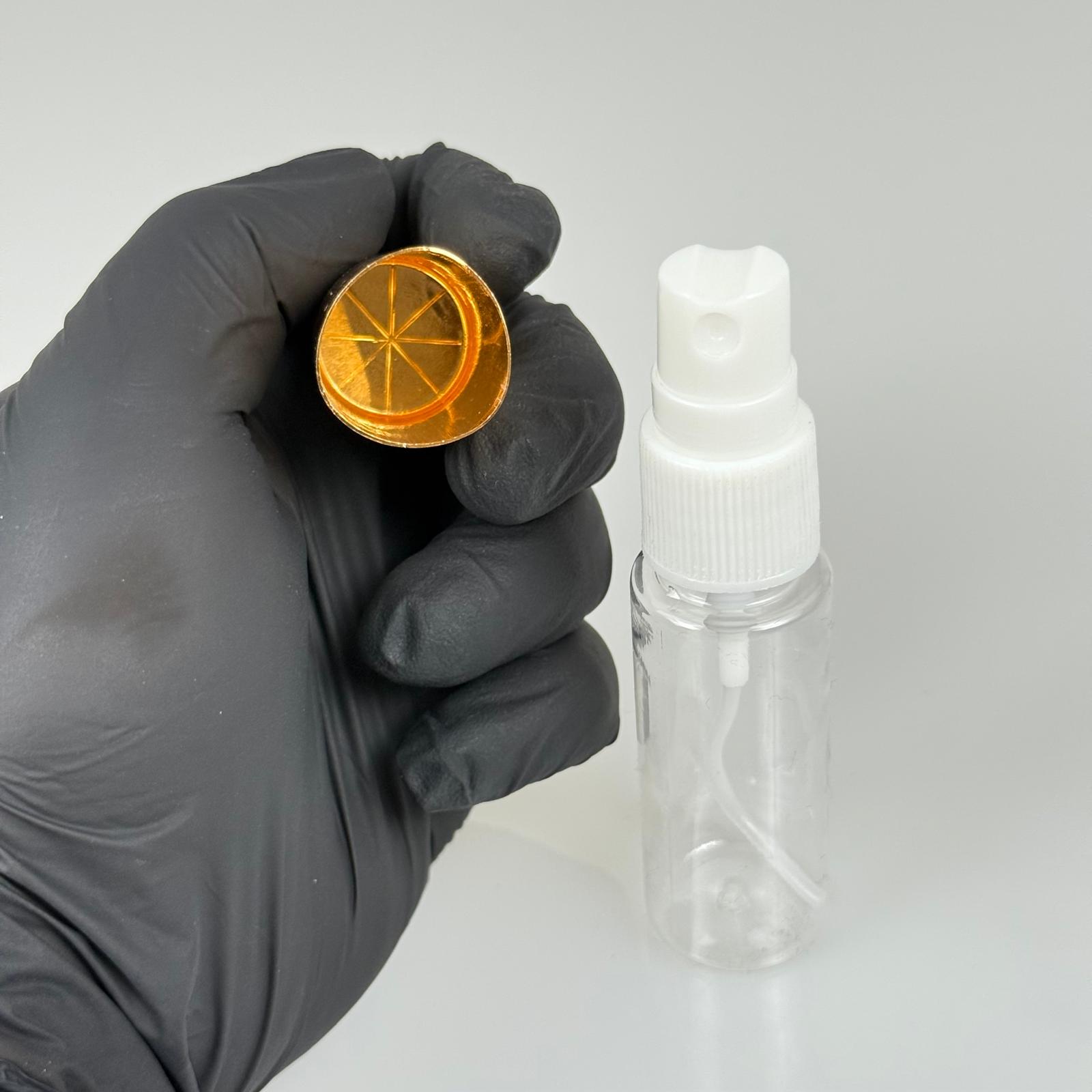 20 ML PET KOLONYA, PARFÜM VB ŞİŞELERİ - METAL ALÜMİNYUM GOLD KAPAK + VİDALI SPREY + 20 CC UZUN MODEL ŞİŞE SET TAKIM - 1000 adet