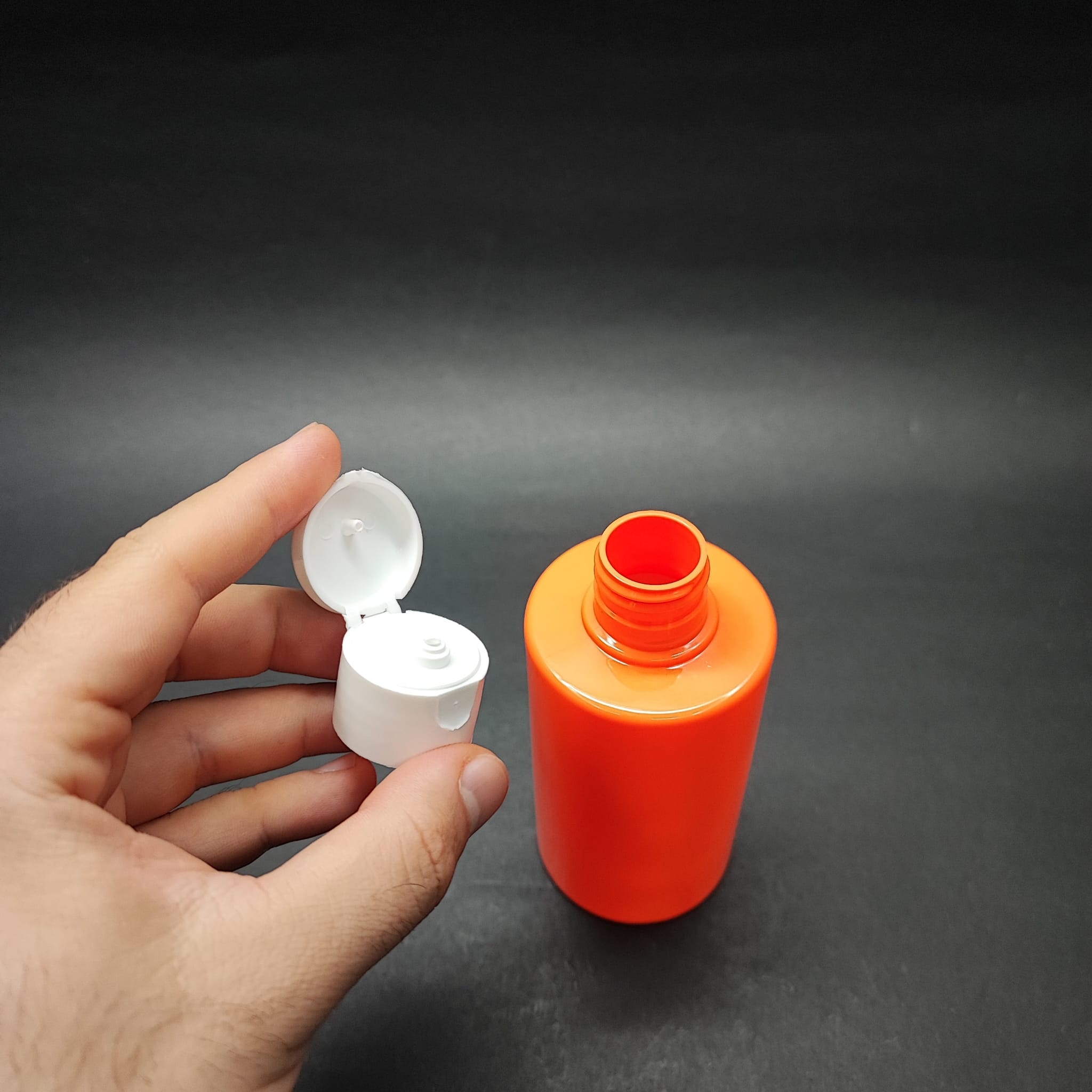 200 CC KÜT BOYUNLU SİLİNDİR PET ŞİŞE (24 GR) - BEYAZ FLİPTOP KAPAKLI - 200 ML PLASTİK ŞİŞE - TURUNCU - 330 adet