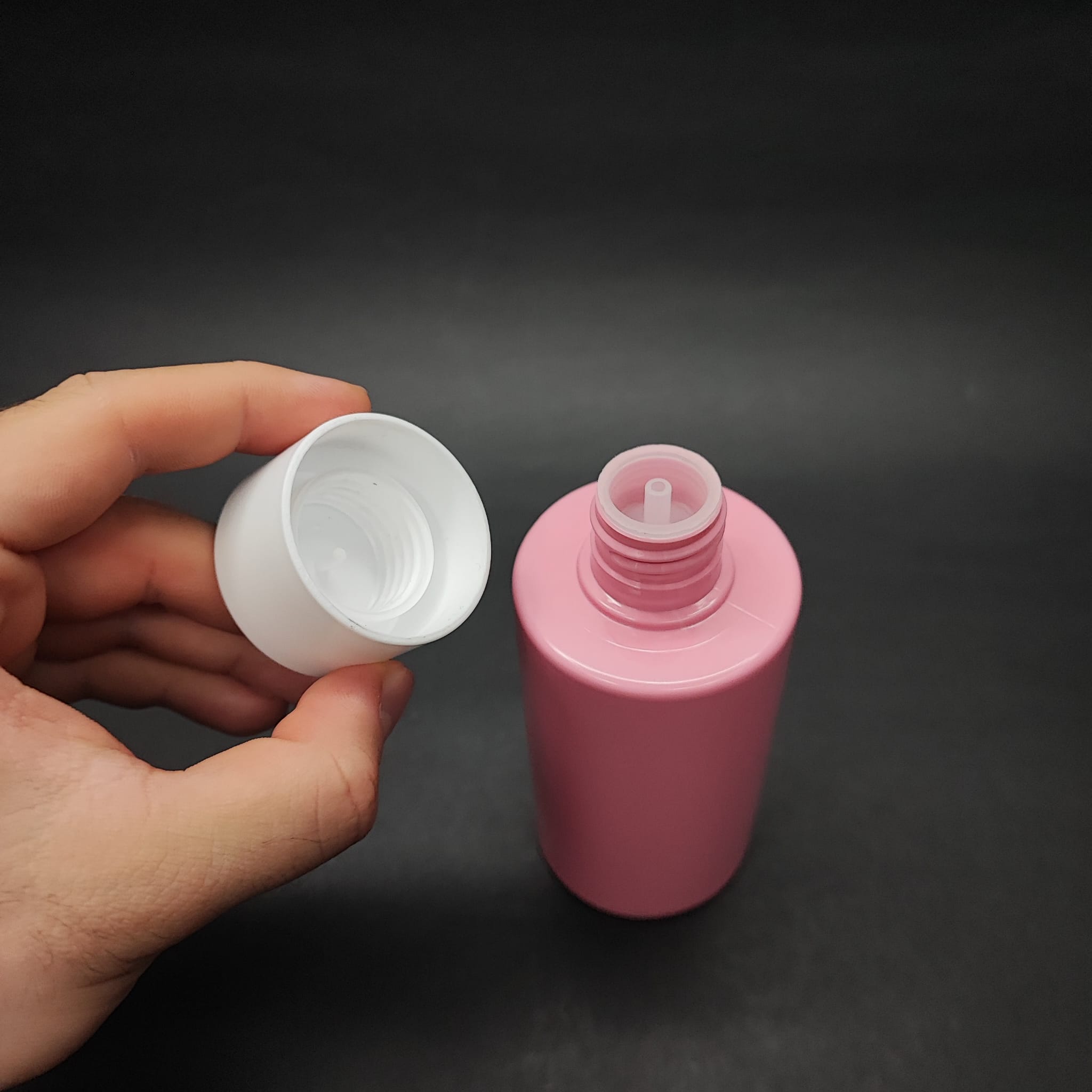 200 CC KÜT BOYUNLU SİLİNDİR PET ŞİŞE (24 GR) - BEYAZ KOLONYA LOSYON KAPAK + TIPA - 200 ML PLASTİK ŞİŞE - PEMBE - 308 adet