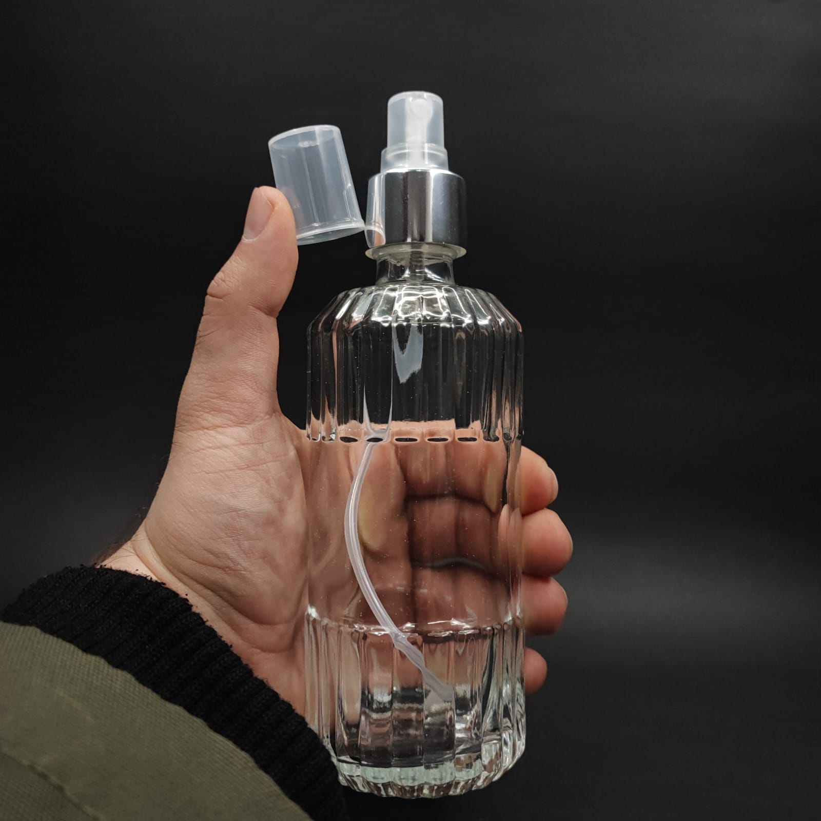 200 CC SİLİNDİR ZÜMRÜT MODEL CAM KOLONYA ŞİŞE - GÜMÜŞ SPREYLİ - 200 ML ZÜMRÜT CAM KOLONYA ŞİŞELERİ - 64 adet