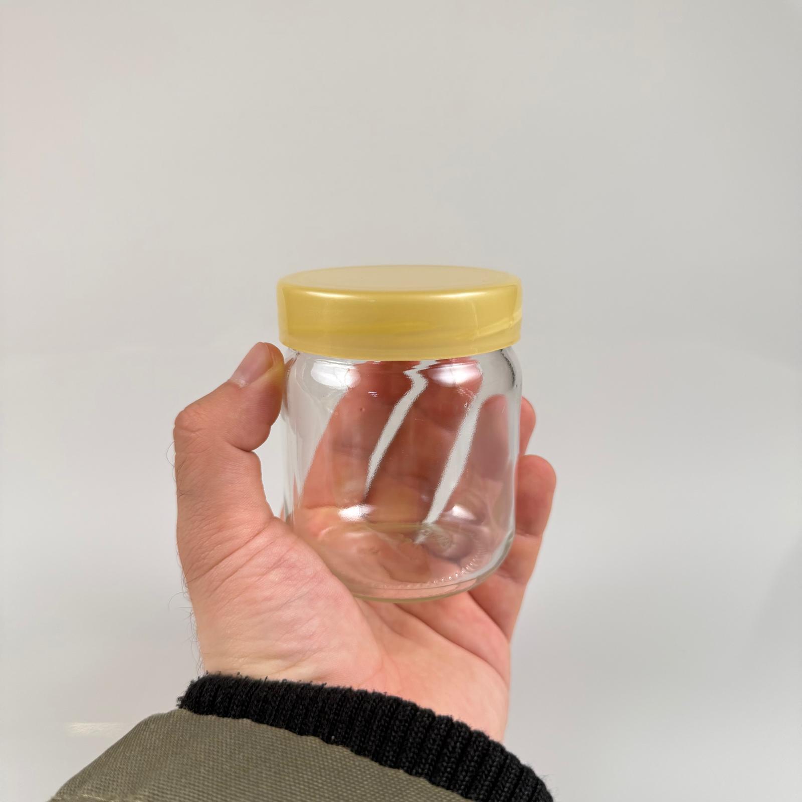 210 CC CAM KAVANOZ + GOLD PLASTİK KAPAK - 210 ML PLASTİK KAPAKLI CAM KAVANOZ - 96 adet