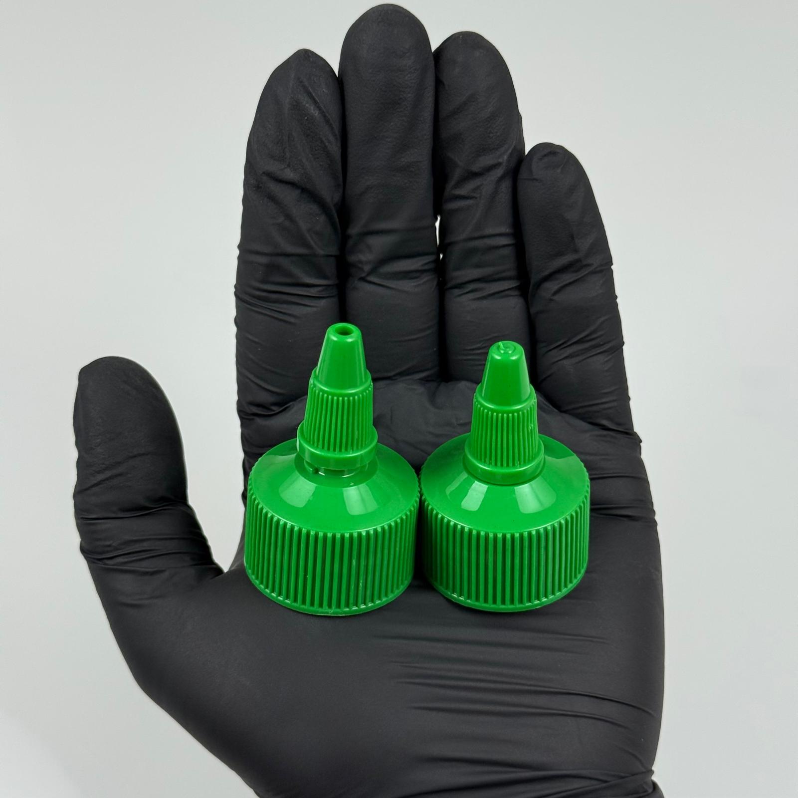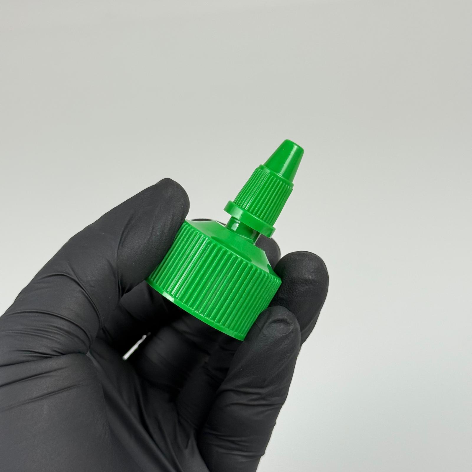 28 MM TWİST ASANSÖR SİVRİ YEŞİL KAPAK - ZEYTİNYAĞ, SOS, MÜREKKEP, ŞAMPUAN, TUTKAL KARTUŞ İÇİN AKITICILI PLASTİK KAPAK - 2000 adet