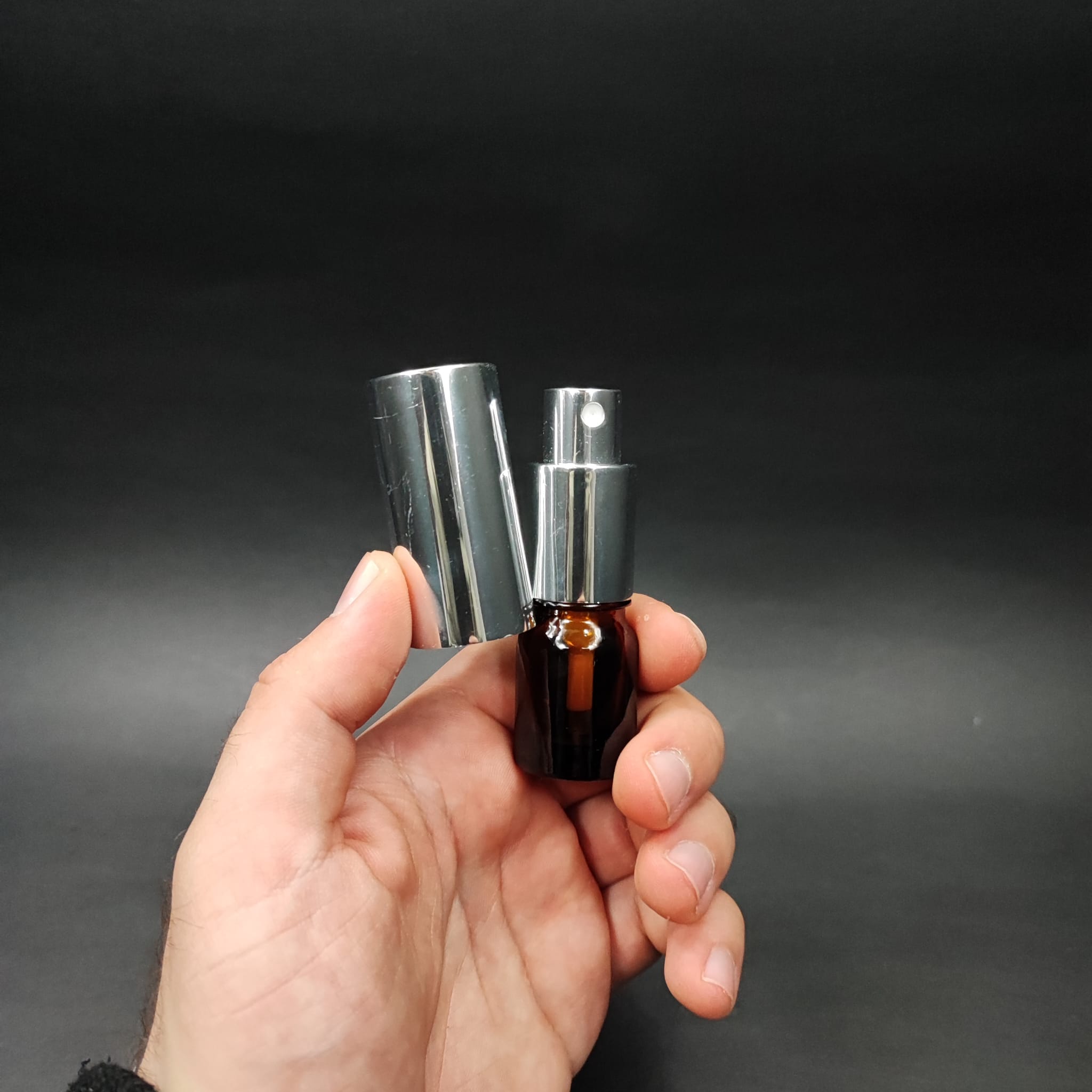 3 ML LÜKS VİDALI VALF ÇEVİRME PARFÜM ŞİŞELERİ - 3 CC AMBER CAM ŞİŞE - GÜMÜŞ METAL SPREYLİ KAPAKLI SET - 336 adet