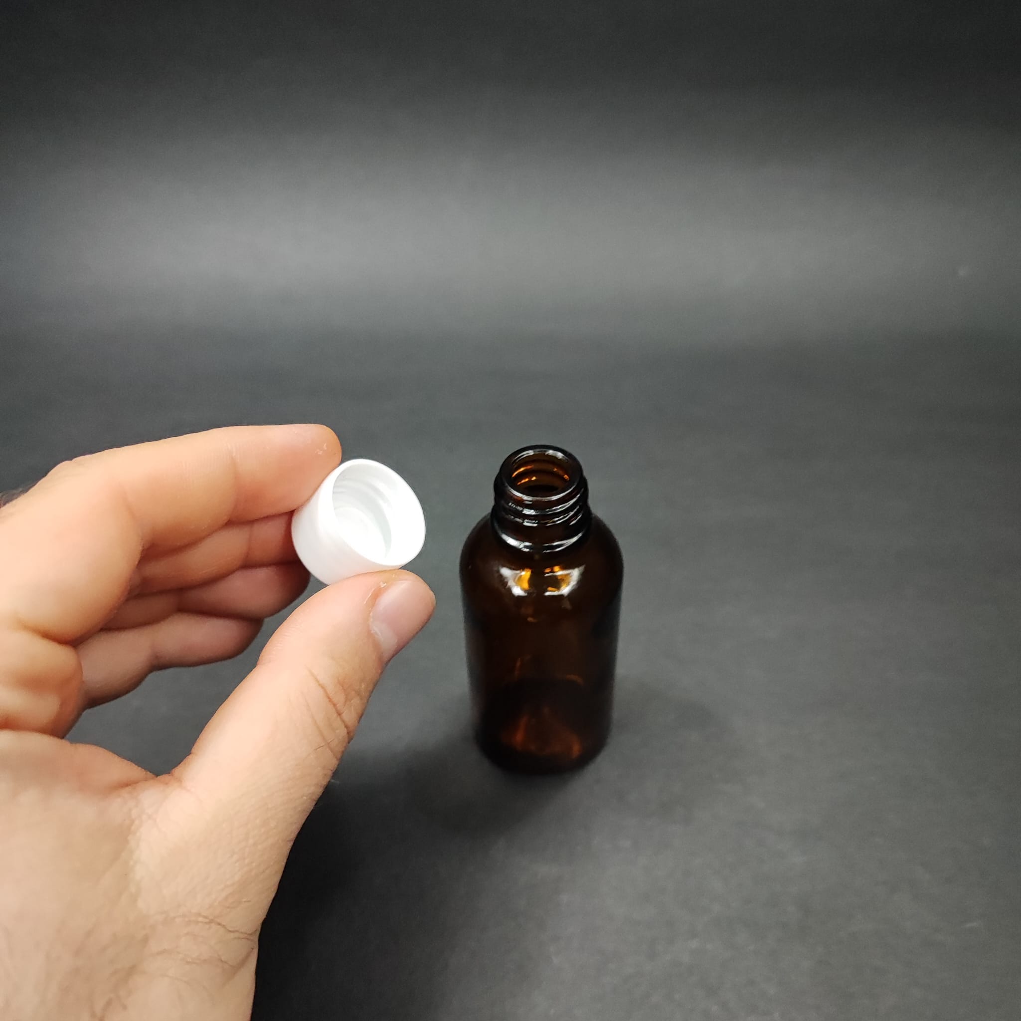 30 CC AMBER CAM ŞİŞE + KENDİNDEN CONTALI SIZDIRMAZ BEYAZ KAPAK - 30 ML KAPAKLI KAHVERENGİ CAM ŞİŞE - 660 adet