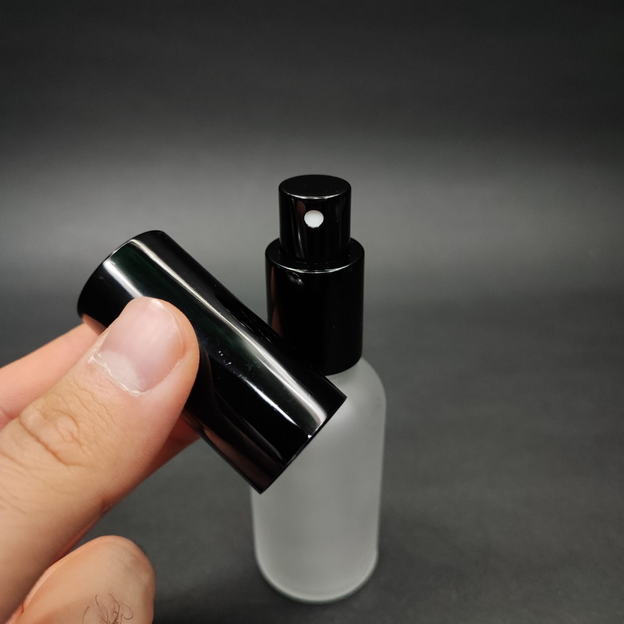 30 CC BUZLU CAM ŞİŞE - SİYAH METALE METAL SPREYLİ - 30 ML BUZLU CAM PARFÜM ŞİŞE - BUZLU CAM LÜX PARFÜM ŞİŞESİ - TEKRAR DOLDURULABİLİR - 660 adet