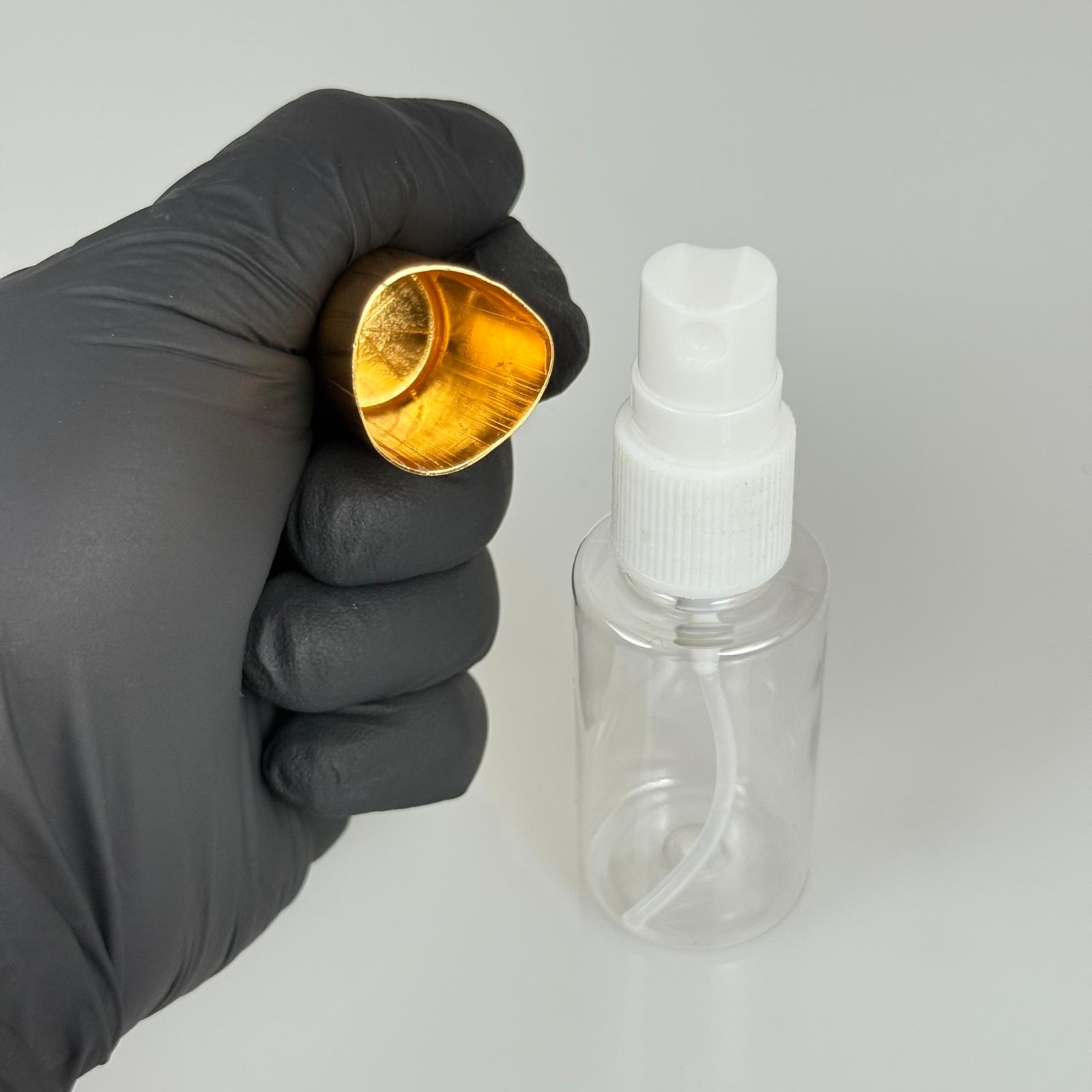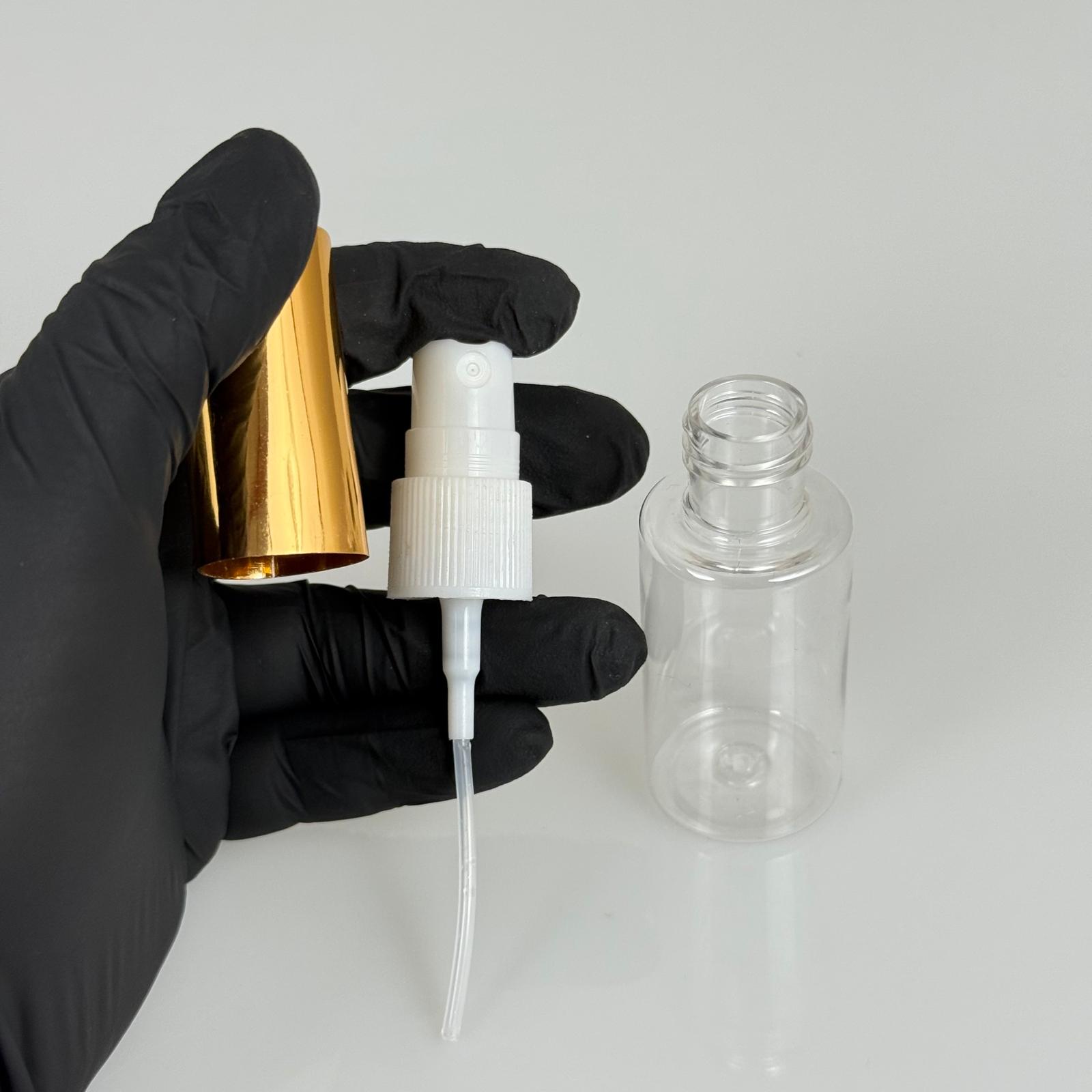 30 ML PET KOLONYA, PARFÜM VB ŞİŞELERİ - METAL ALÜMİNYUM GOLD KAPAK + VİDALI SPREY + 30 CC ŞİŞE SET TAKIM - 1000 adet