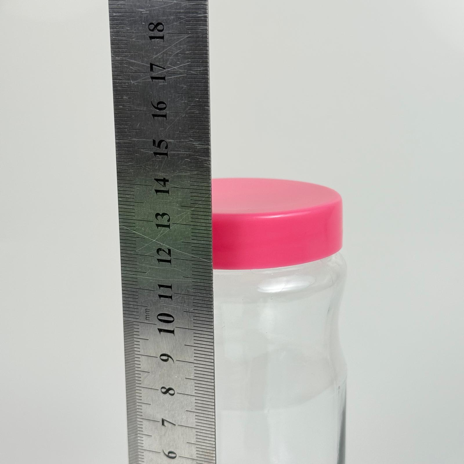 370 CC BOĞUMLU CAM KAVANOZ + PEMBE PLASTİK KAPAK - 370 ML PLASTİK KAPAKLI CAM KAVANOZ - 50 adet