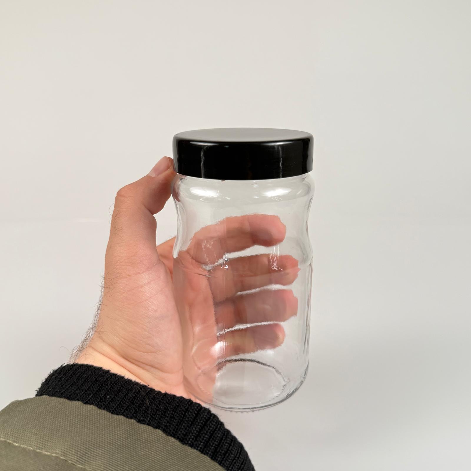 370 CC BOĞUMLU CAM KAVANOZ + SİYAH PLASTİK KAPAK - 370 ML PLASTİK KAPAKLI CAM KAVANOZ - 50 adet