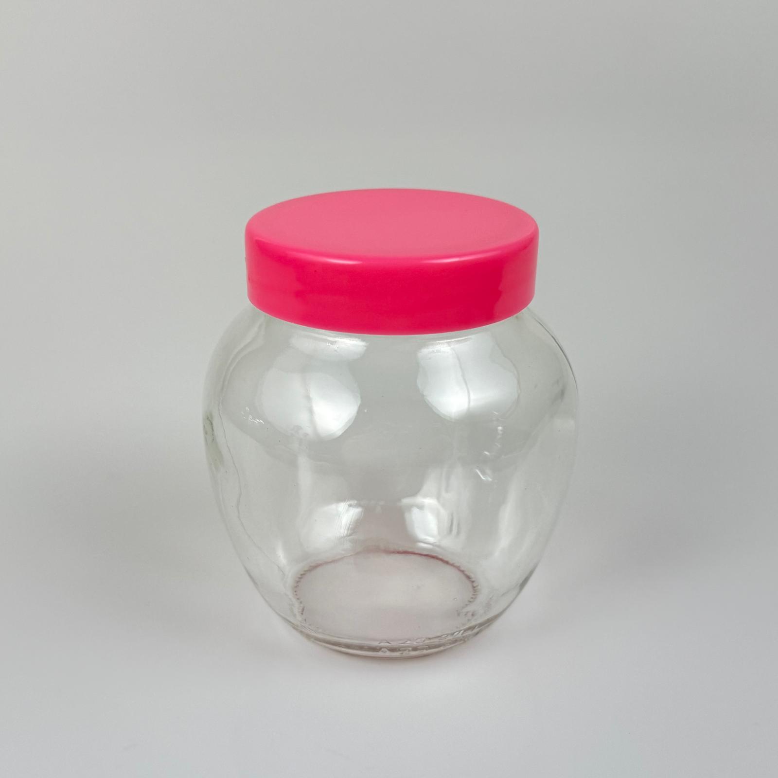 370 CC YUMURTA CAM KAVANOZ + PEMBE PLASTİK KAPAK - 370 ML PLASTİK KAPAKLI CAM KAVANOZ - 90 adet