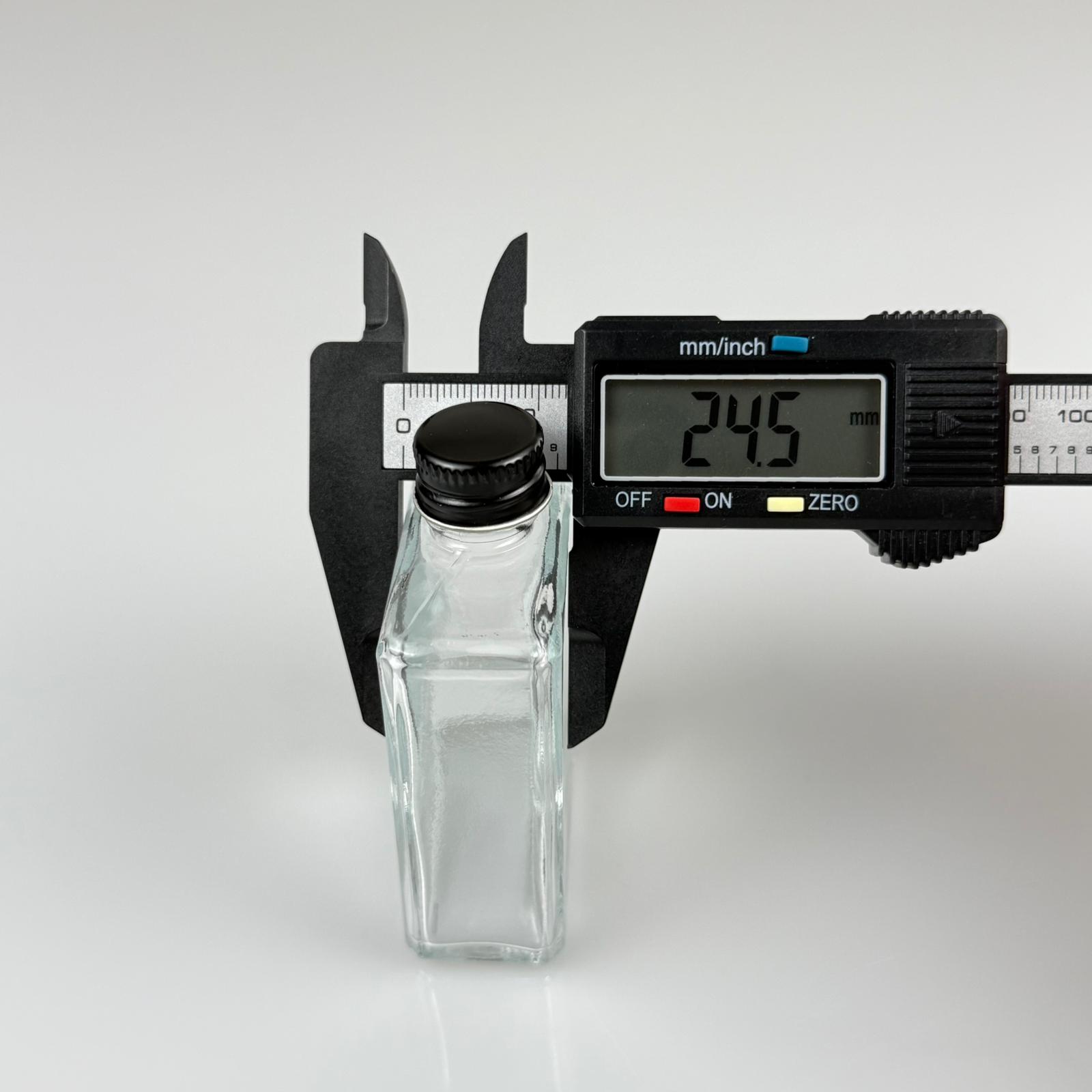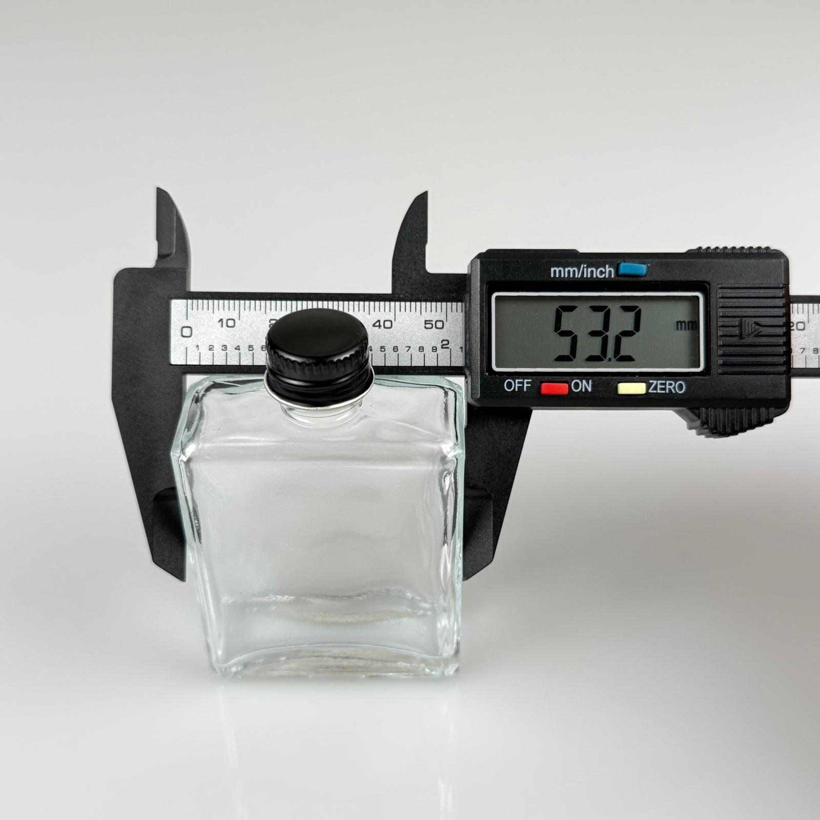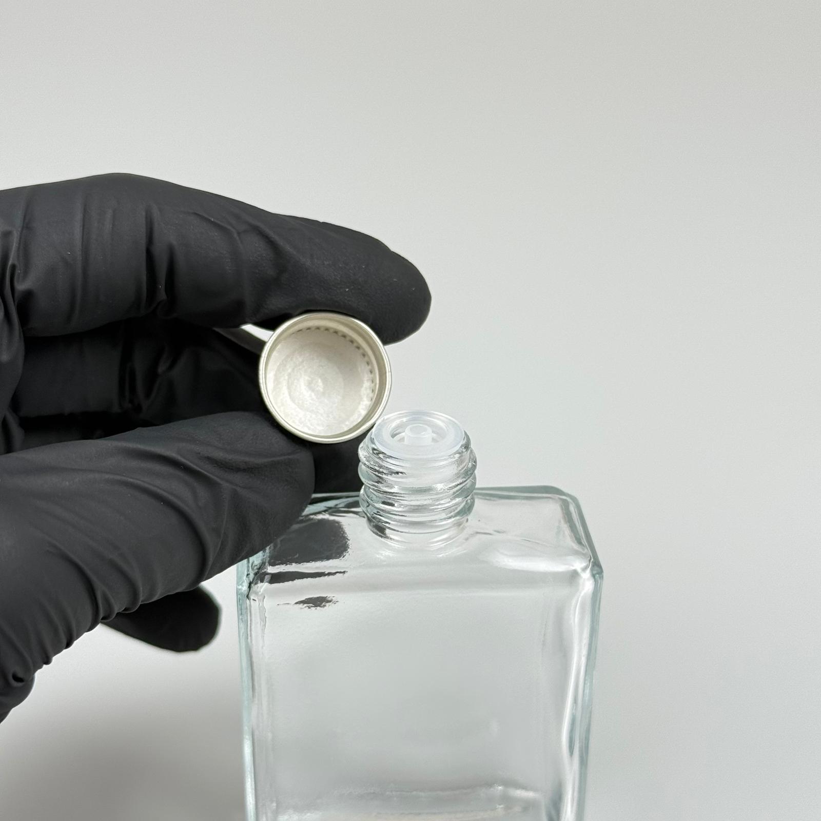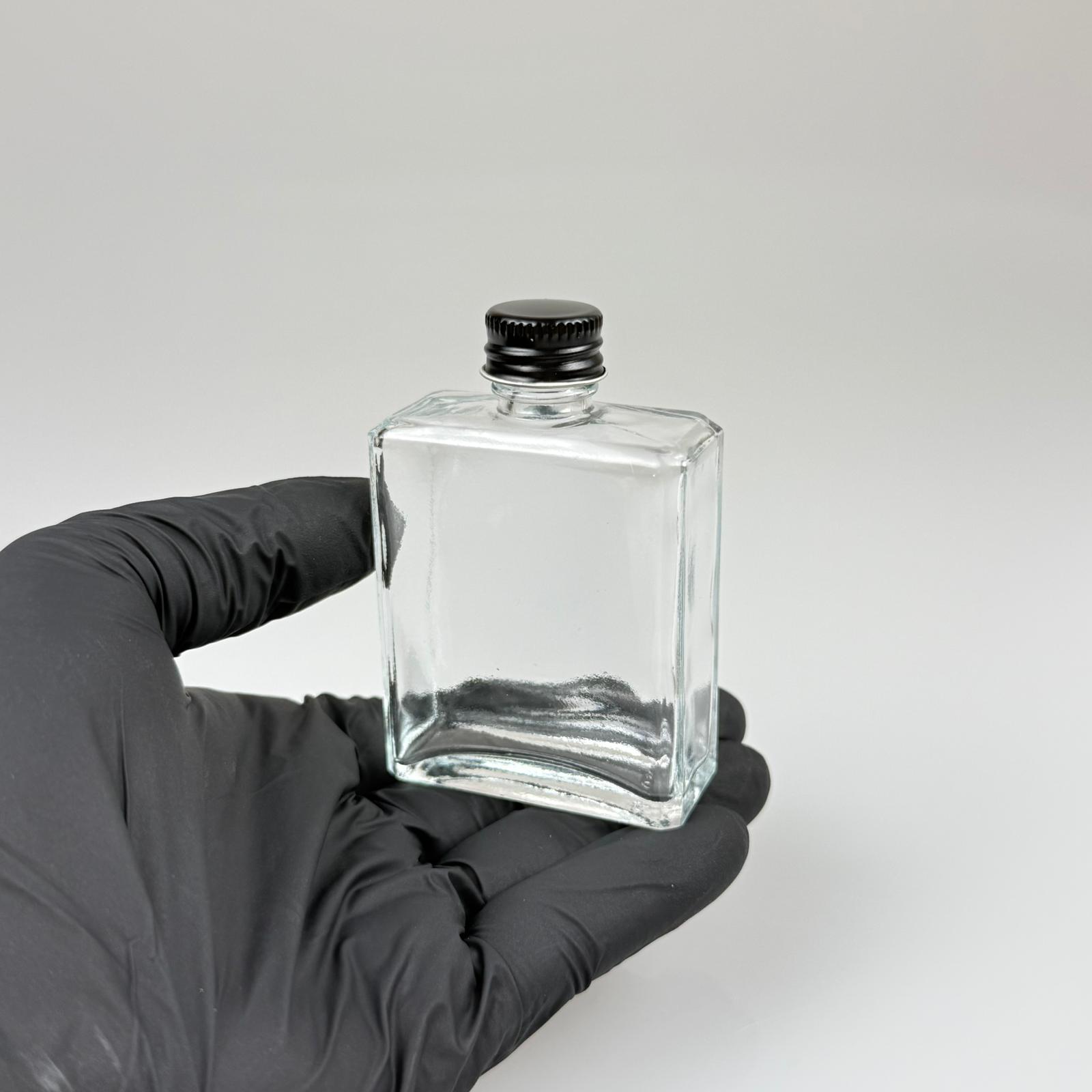 40 CC YASSI DİKDÖRTGEN KÖŞELİ KISA CAM ŞİŞE - SİYAH METAL KAPAKLI KOLONYA TIPALI - 40 ML PRESTİJLİ ŞİŞE - 330 adet
