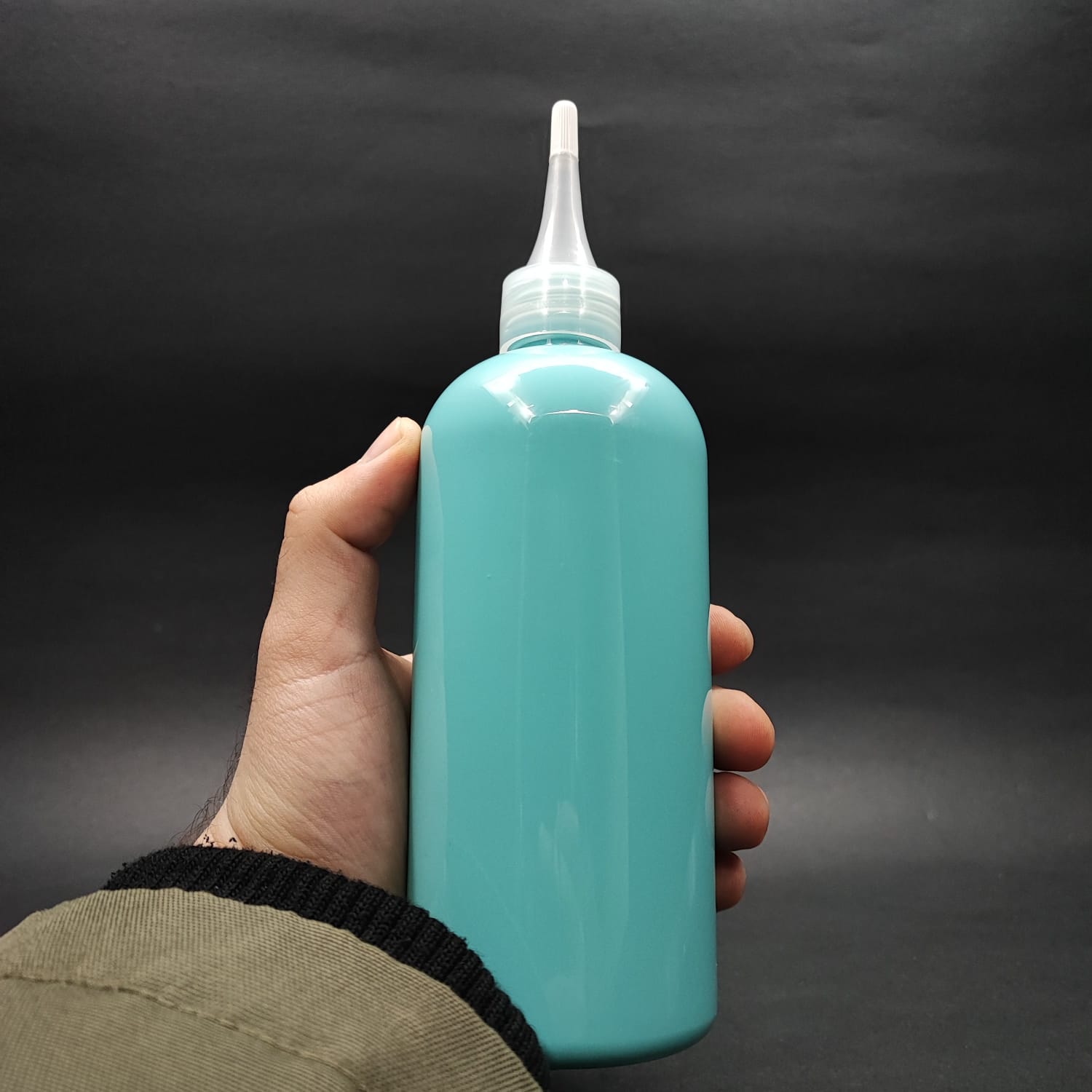 400 CC OVAL BOYUNLU SİLİNDİR PET ŞİŞE (30 GR) - AKITICI ŞEFFAF KAPAKLI - 400 ML PLASTİK ŞİŞE - TURKUAZ - 210 adet
