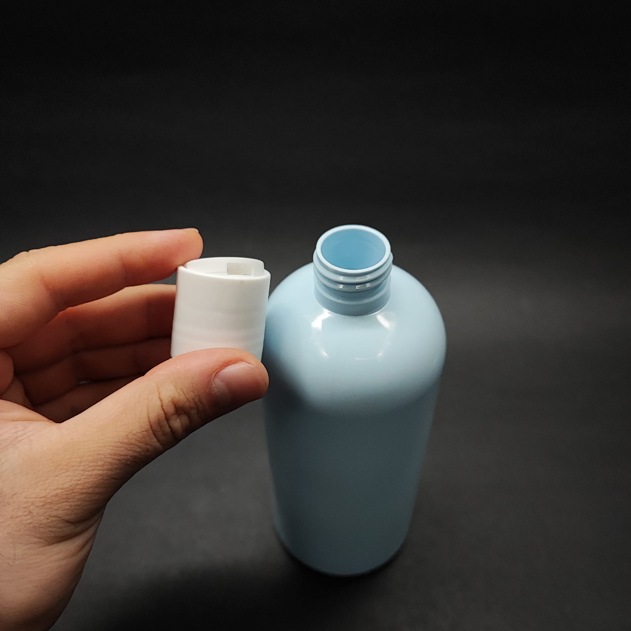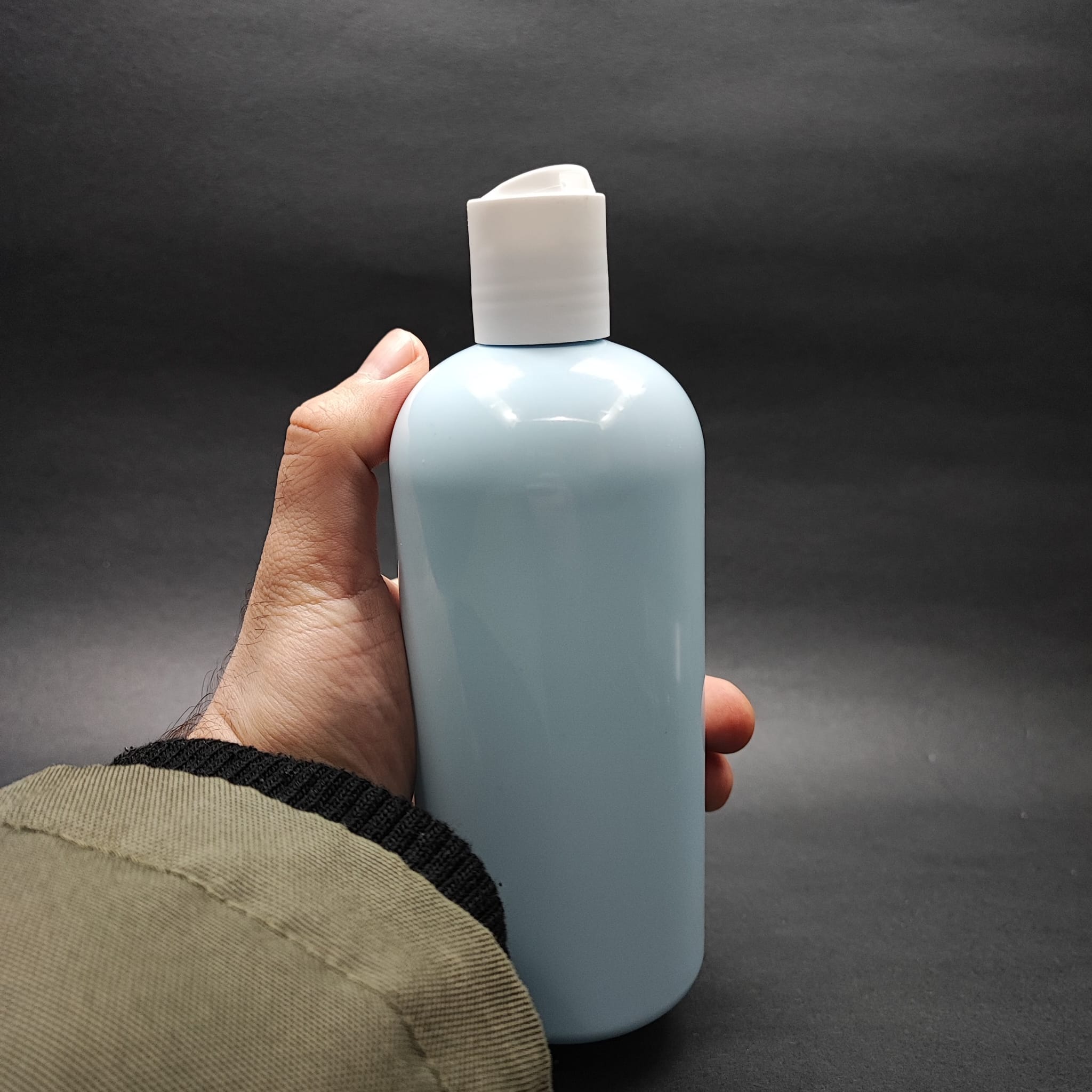 400 CC OVAL BOYUNLU SİLİNDİR PET ŞİŞE (30 GR) - BEYAZ DİSKTOP ŞAMPUAN KAPAKLI - 400 ML PLASTİK ŞİŞE - BEBEK MAVİSİ - 210 adet