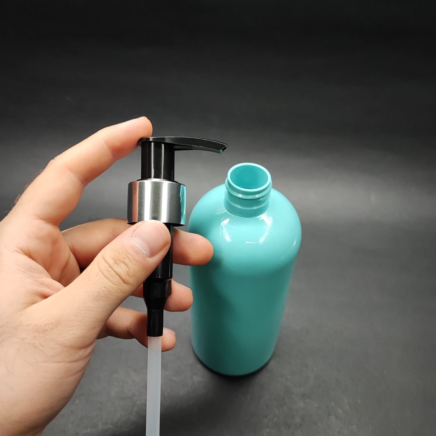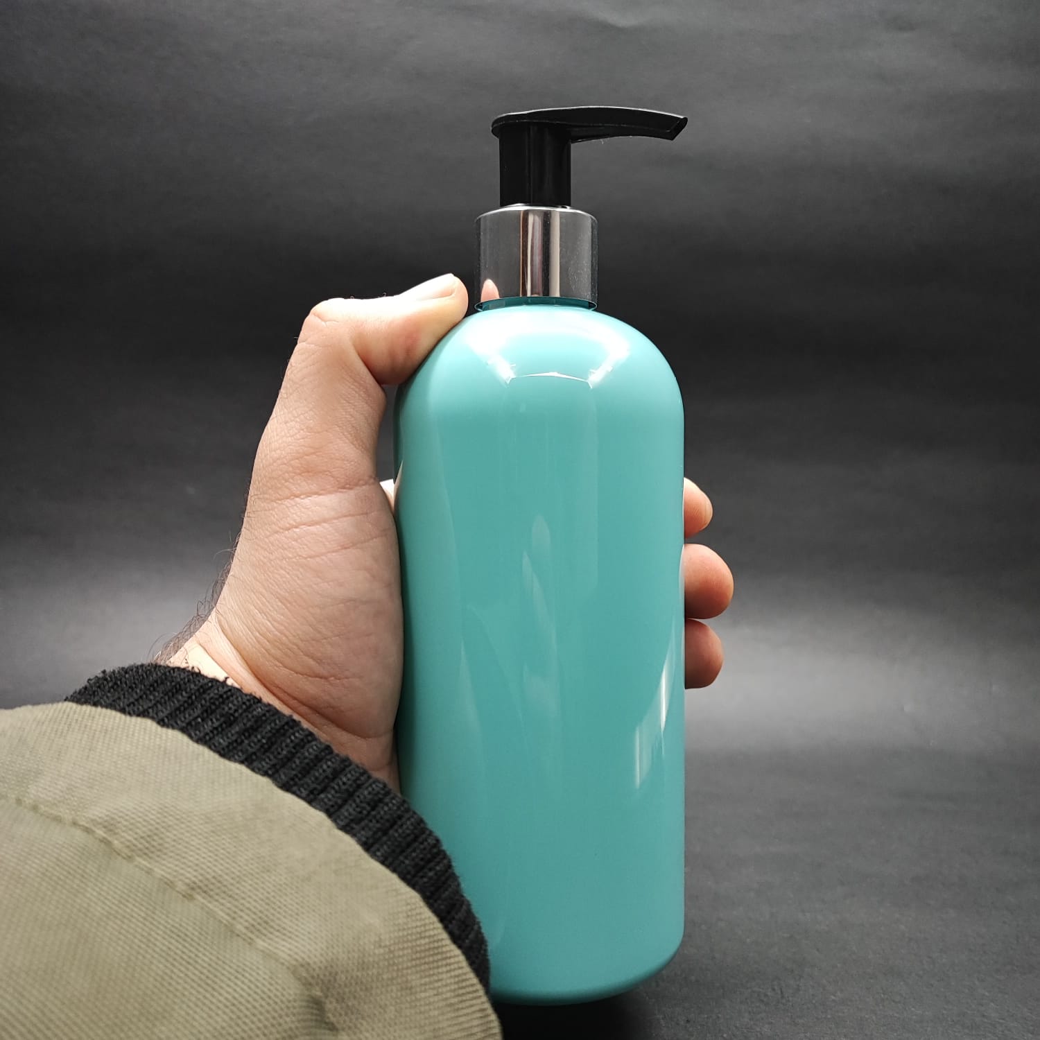 400 CC OVAL BOYUNLU SİLİNDİR PET ŞİŞE (30 GR) - GÜMÜŞ POMPALI - 400 ML PLASTİK ŞİŞE - TURKUAZ - 210 adet