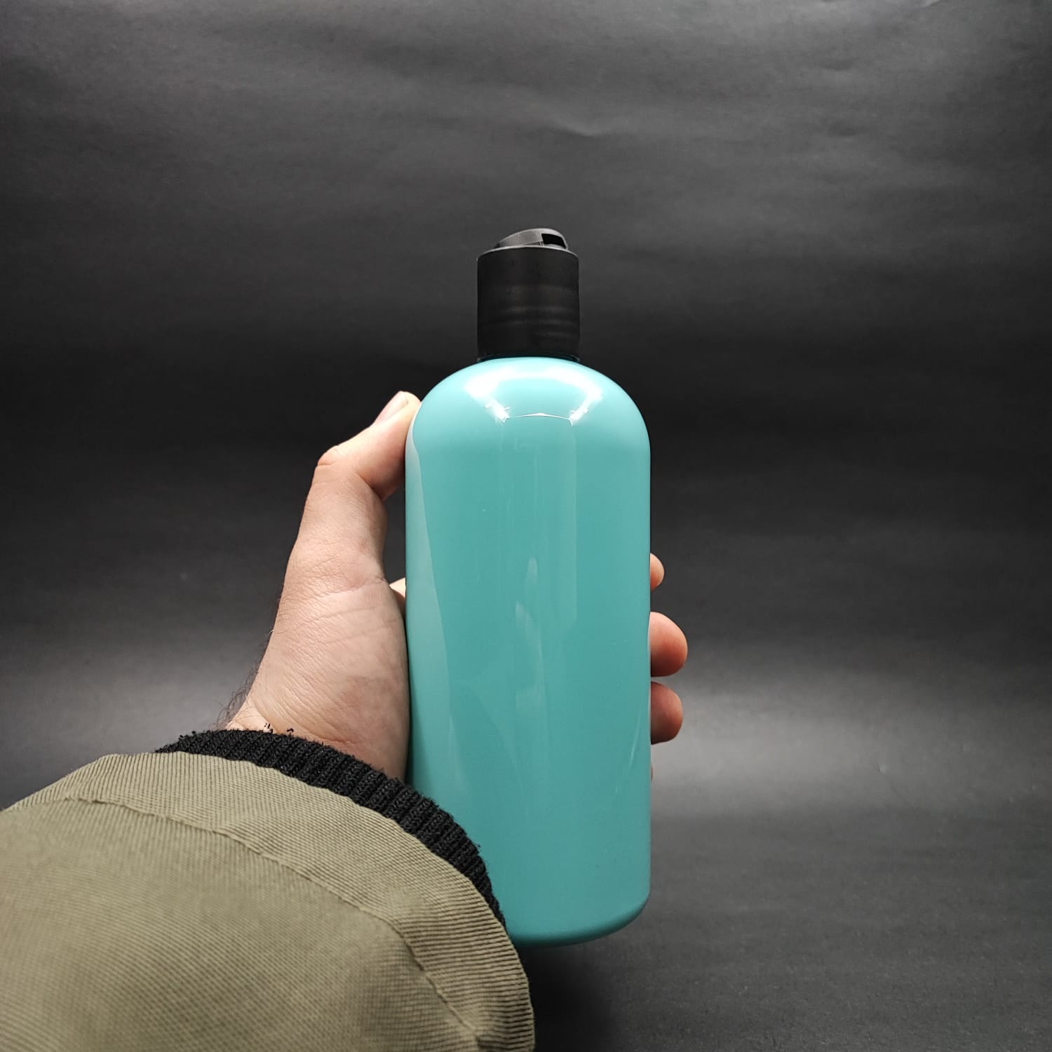 400 CC OVAL BOYUNLU SİLİNDİR PET ŞİŞE (30 GR) - SİYAH DİSKTOP ŞAMPUAN KAPAKLI - 400 ML PLASTİK ŞİŞE - TURKUAZ - 210 adet