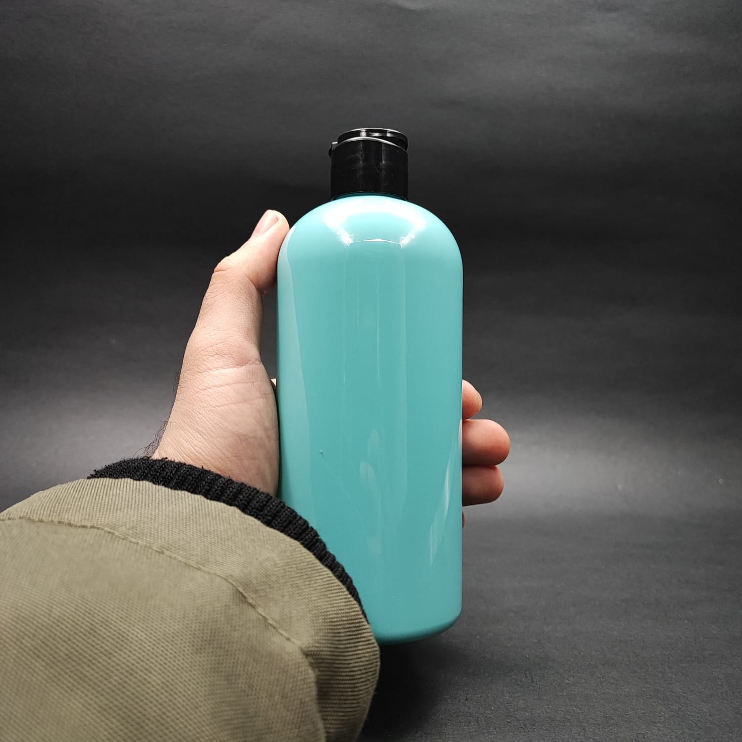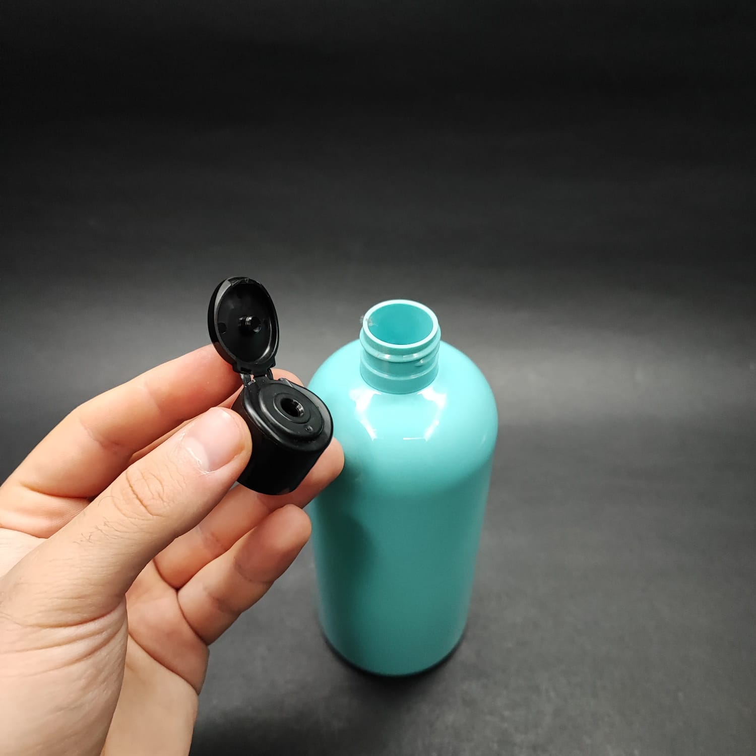 400 CC OVAL BOYUNLU SİLİNDİR PET ŞİŞE (30 GR) - SİYAH FARMASİ MODEL FLİPTOP ŞAMPUAN KAPAKLI - 400 ML PLASTİK ŞİŞE - TURKUAZ - 210 adet