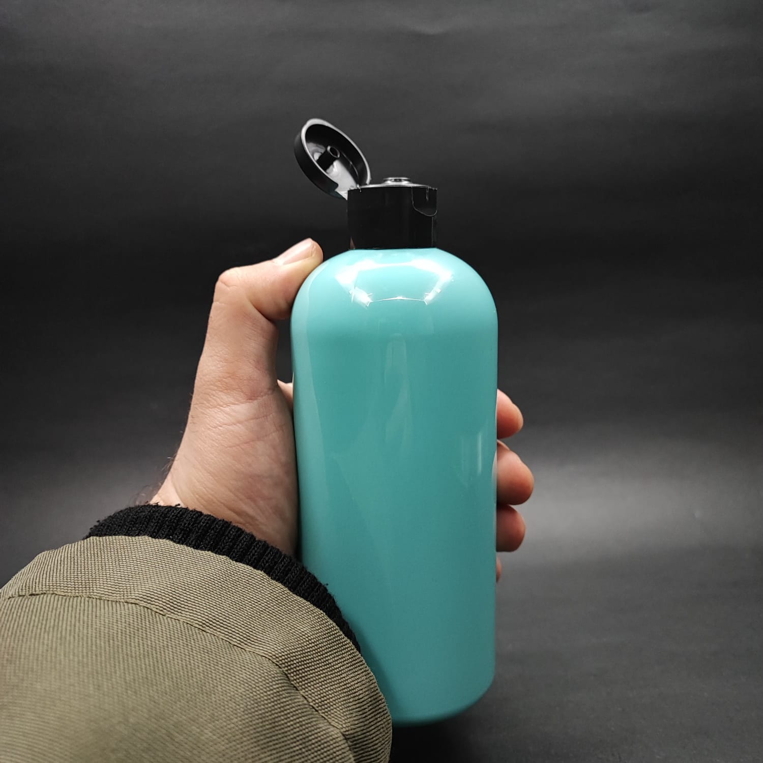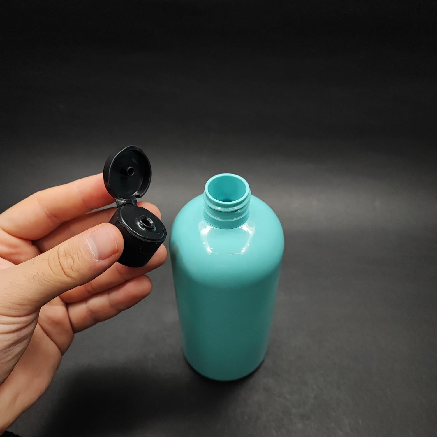 400 CC OVAL BOYUNLU SİLİNDİR PET ŞİŞE (30 GR) - SİYAH FLİPTOP ŞAMPUAN KAPAKLI - 400 ML PLASTİK ŞİŞE - TURKUAZ - 210 adet