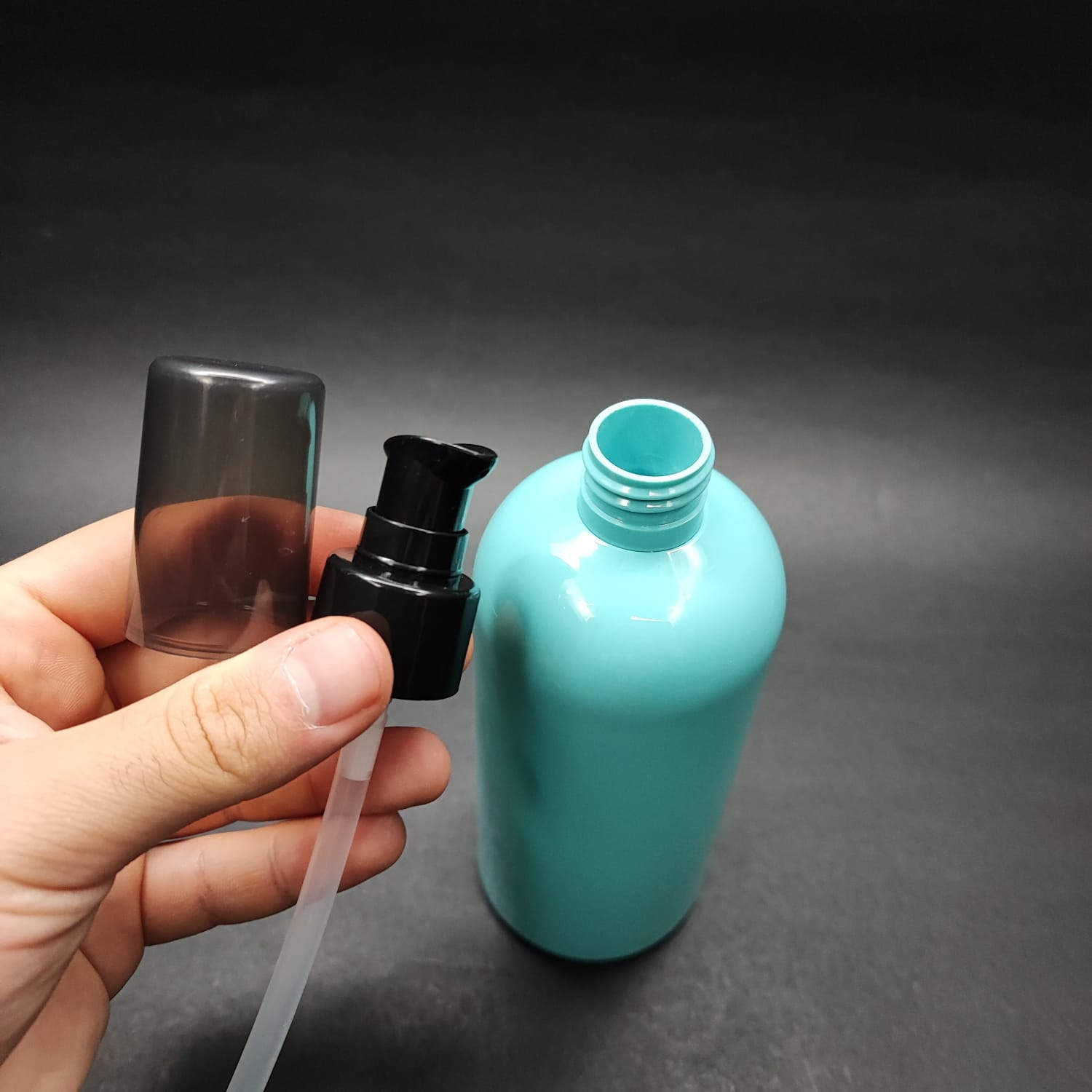 400 CC OVAL BOYUNLU SİLİNDİR PET ŞİŞE (30 GR) - SİYAH LOSYON POMPALI - 400 ML PLASTİK ŞİŞE - TURKUAZ - 210 adet