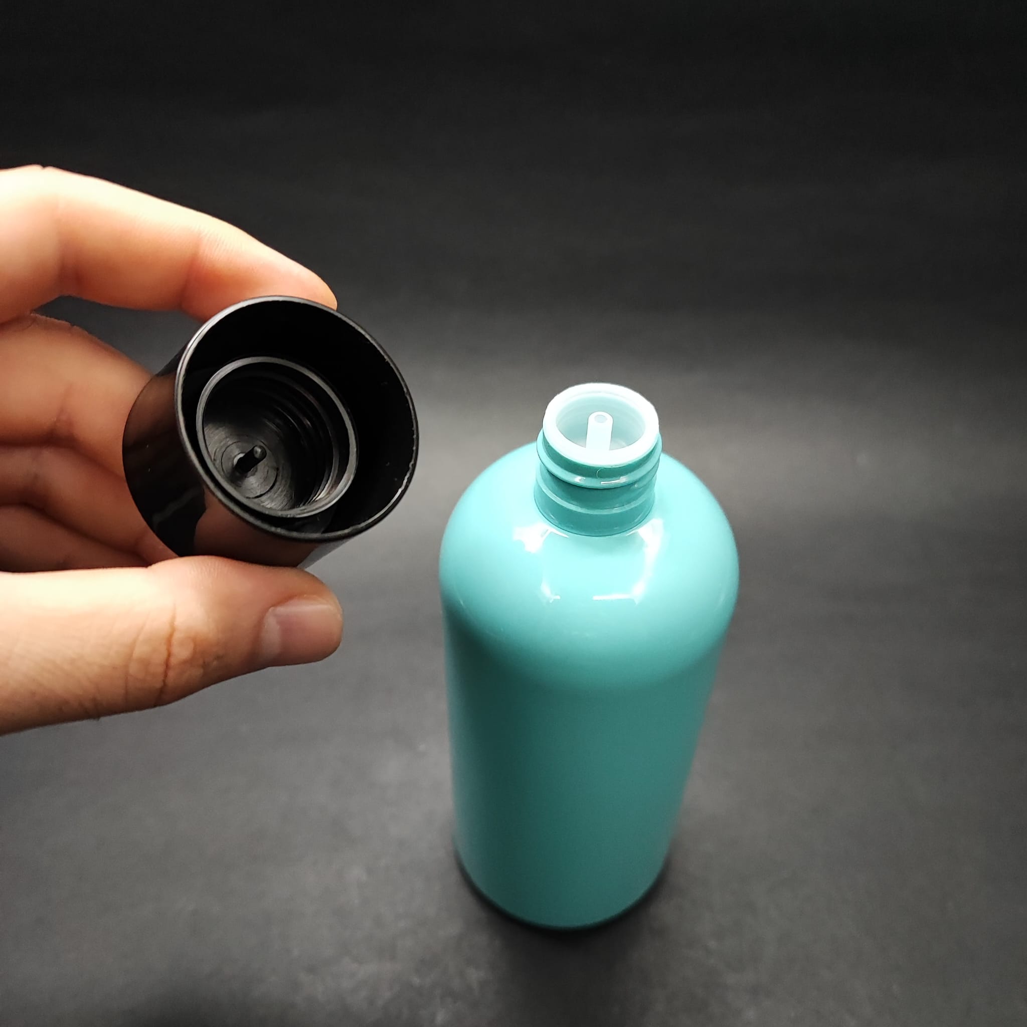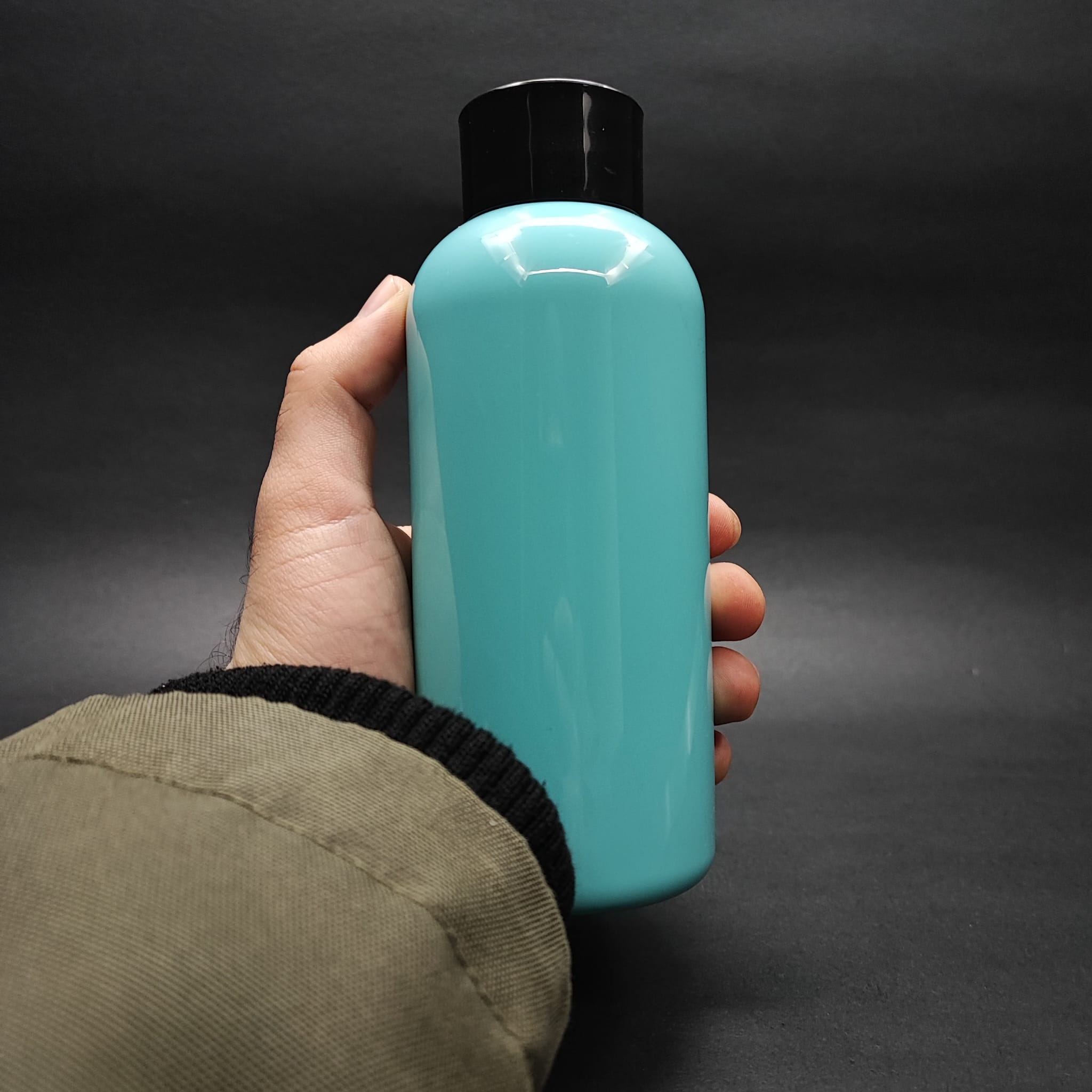 400 CC OVAL BOYUNLU UZUN SİLİNDİR PET ŞİŞE (30 GR) - SİYAH KOLONYA LOSYON KAPAK + TIPA - 400 ML PLASTİK ŞİŞE - TURKUAZ - 210 adet