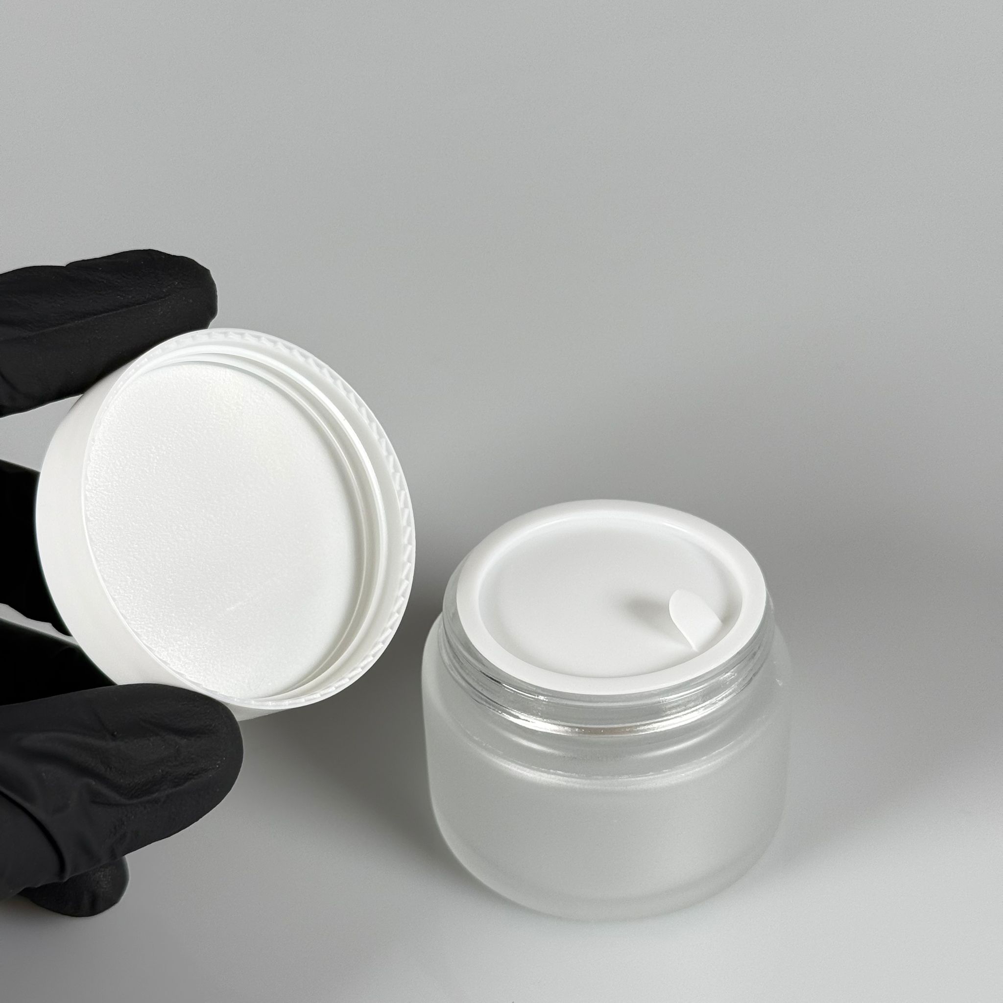 50 CC CAM BUZLU KREM KAVANOZU - BEYAZ KAPAKLI İÇ CONTALI - 50 ML BUZLU CAM KREM KAVANOZU - BUZLU KOZMETİK KAVANOZU - 168 adet