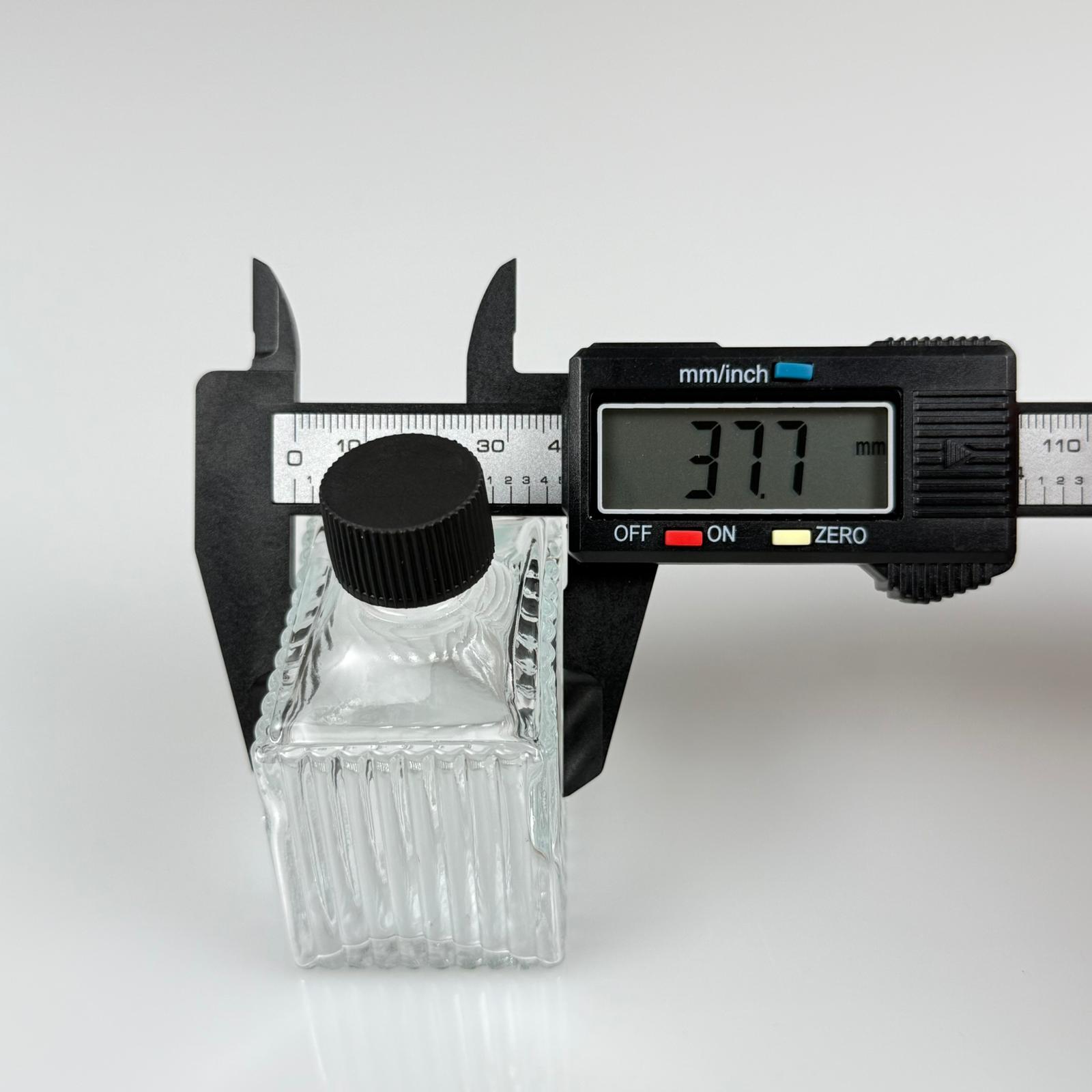 50 CC KÖŞELİ DESENLİ ÇİZGİLİ CAM ŞİŞE - SİYAH PLASTİK KAPAKLI - 50 ML PRESTİJLİ ŞİŞE - 330 adet