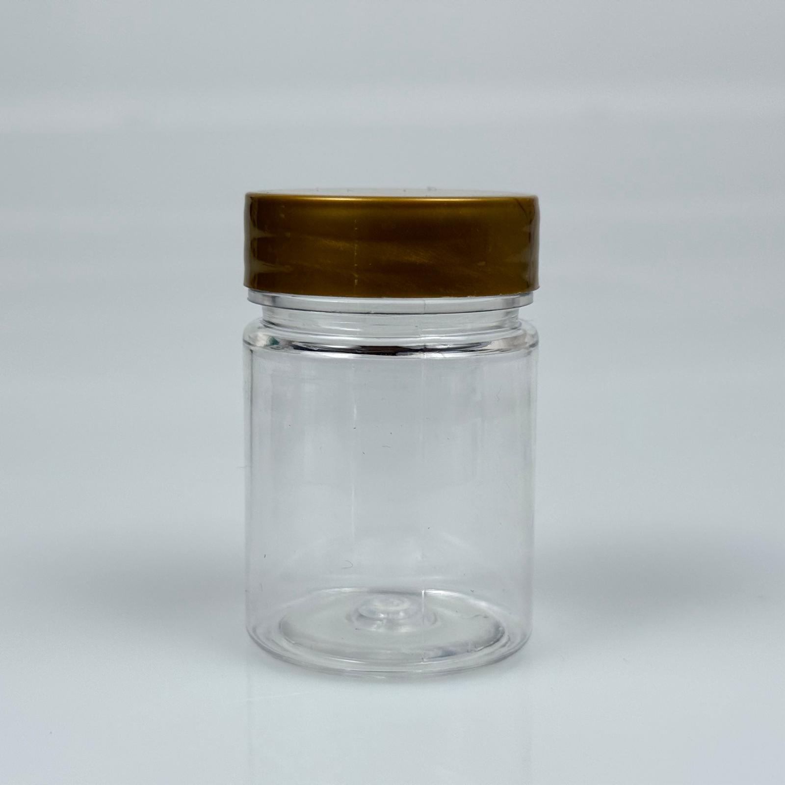 50 CC PET ŞİŞE GENİŞ AĞIZLI - GOLD KAPAKLI - 50 ML PLASTİK NUMUNE KAVANOZU, MİNİ TABLET KAVANOZU - 1000 adet