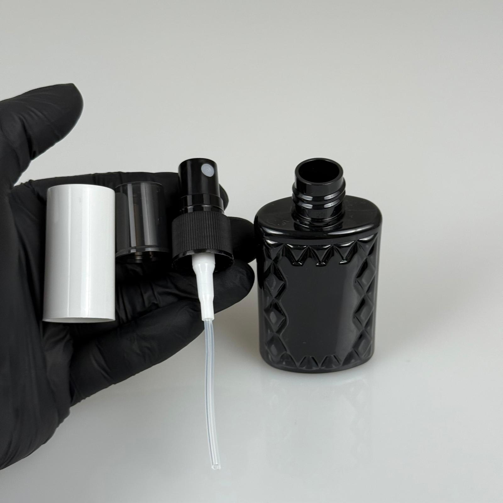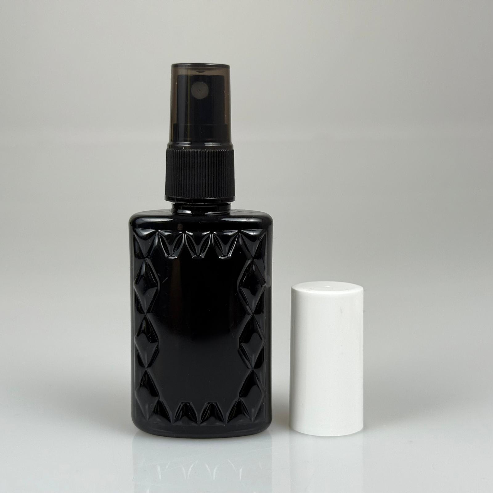 50 CC SİYAH PET KÖŞELİ PARFÜM ŞİŞESİ - SİYAH SPREYLİ - BEYAZ KORUMA KAPAKLI - 50 ML PLASTİK PARFÜM - KOLONYA ŞİŞESİ - 1300 adet