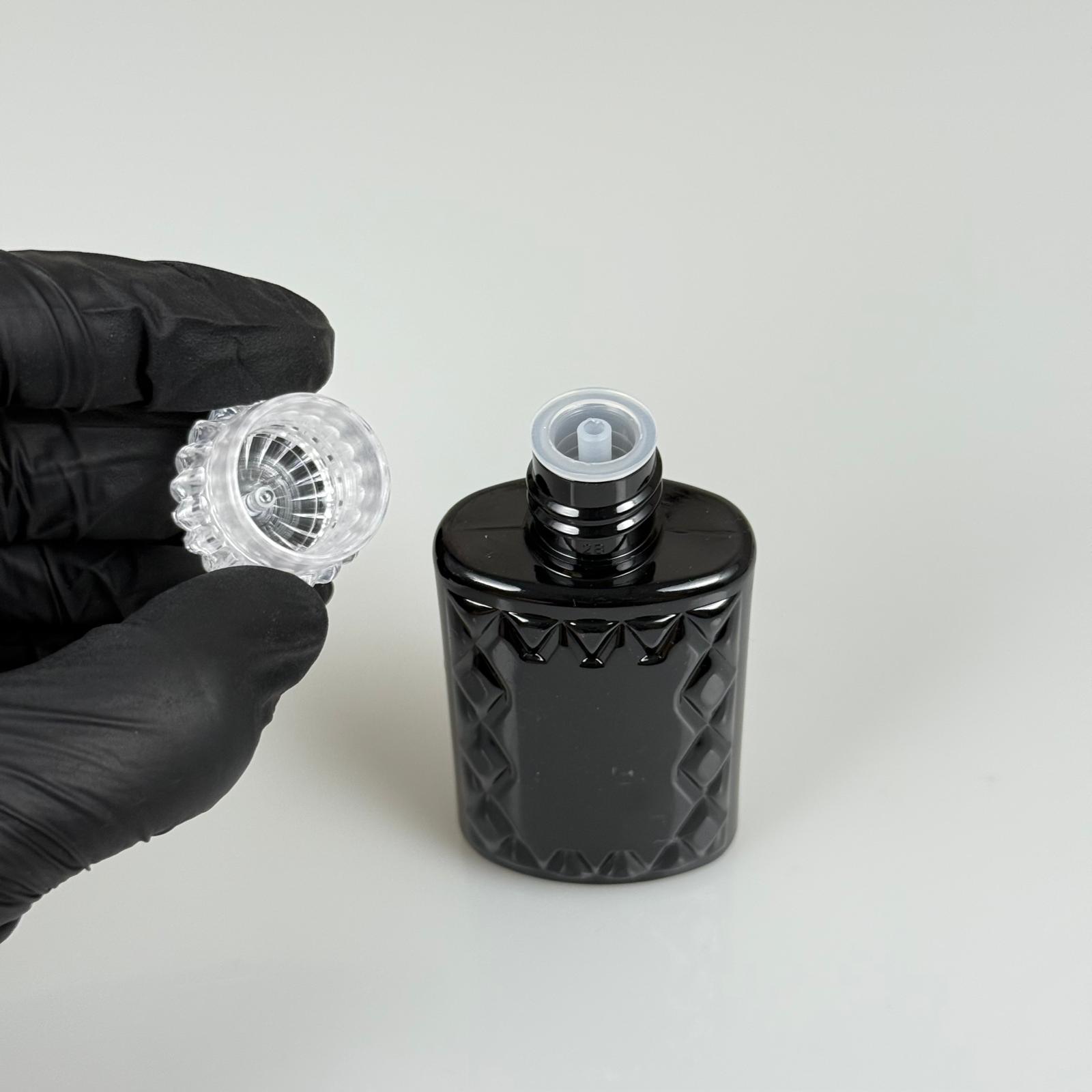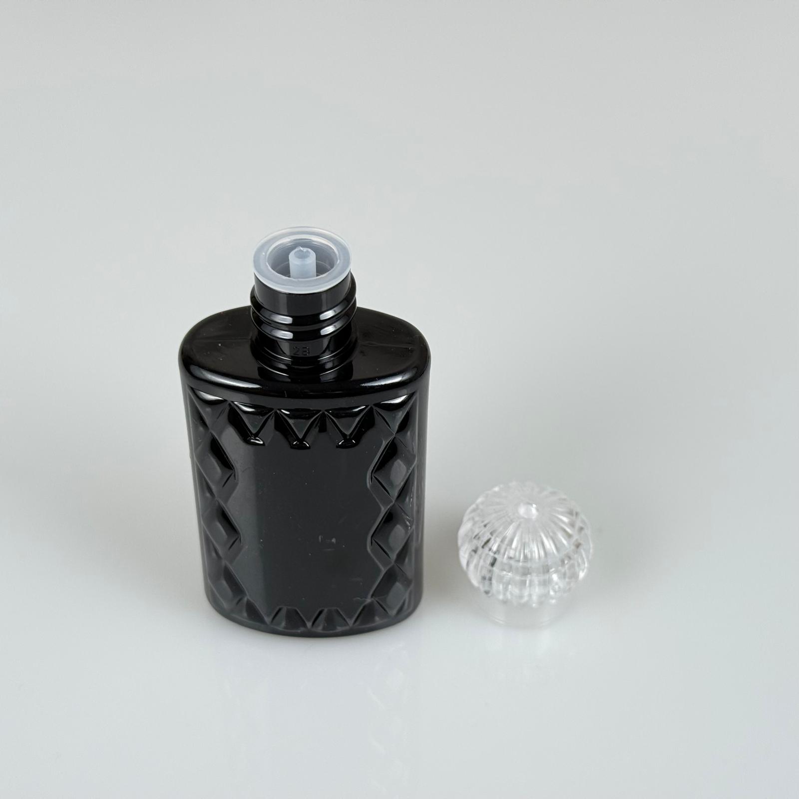 50 CC SİYAH PLASTİK KOLONYA ŞİŞESİ - KRİSTAL KAPAKLI TIPALI - 50 ML YASSI PET DESENLİ KOLONYA ŞİŞESİ - 1300 adet