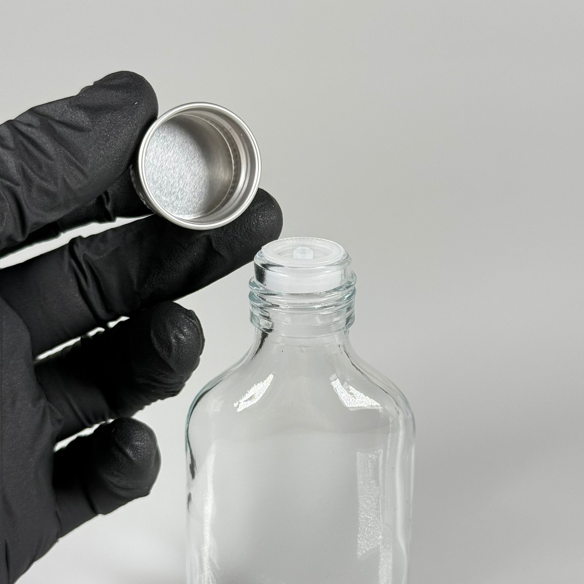 50 CC YASSI CAM ŞİŞE - GÜMÜŞ METAL KAPAKLI KOLONYA TIPALI - 50 ML COLD BREW KOLONYA CAM ŞİŞESİ (TIPA İLE KULLANMAK İÇİN KAPAK CONTASI ÇIKARILIR) - 320 adet