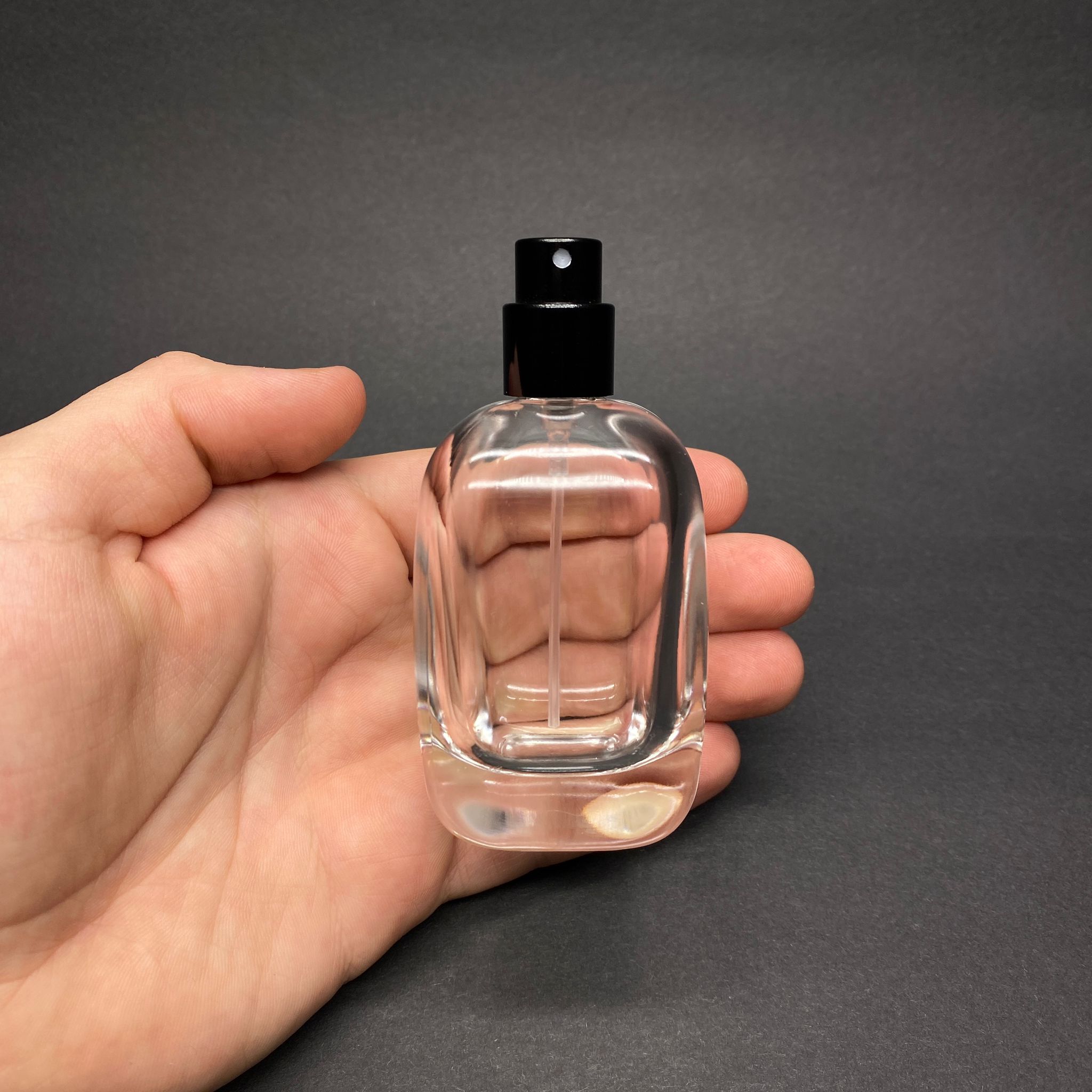 50 ML OVAL KARE MODEL CORE PARFÜM ŞİŞESİ - SİYAH METAL SPREYLİ (AĞIZ 15 MM GEÇME KOLAY KAPAMA) - 90 adet