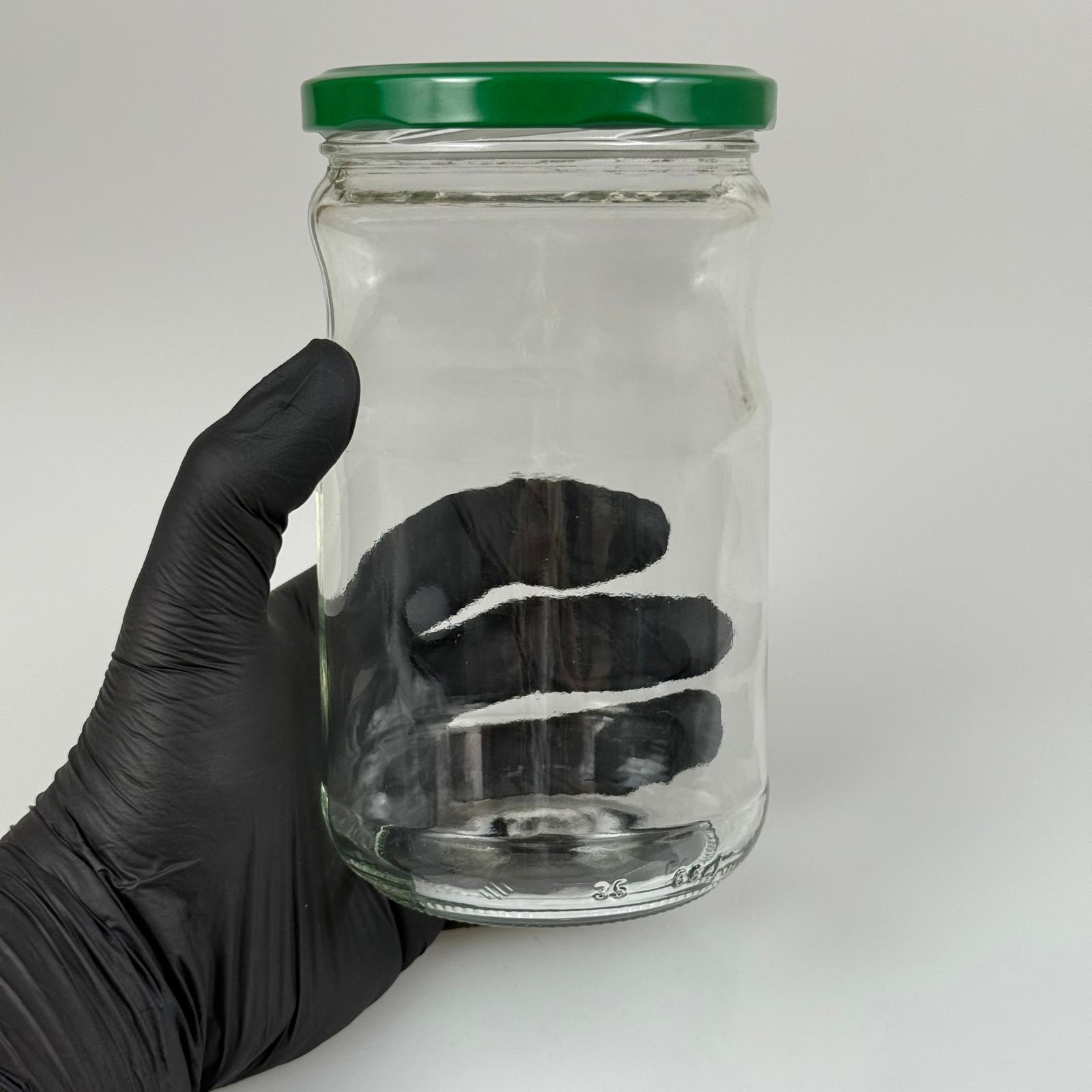 660 CC BOĞUMLU CAM KAVANOZ - KOYU YEŞİL METAL KAPAKLI - 660 ML CAM KAVANOZ - KONSERVE KAVANOZU - 30 adet