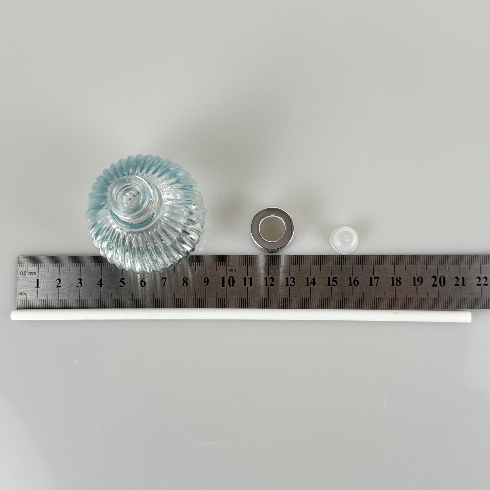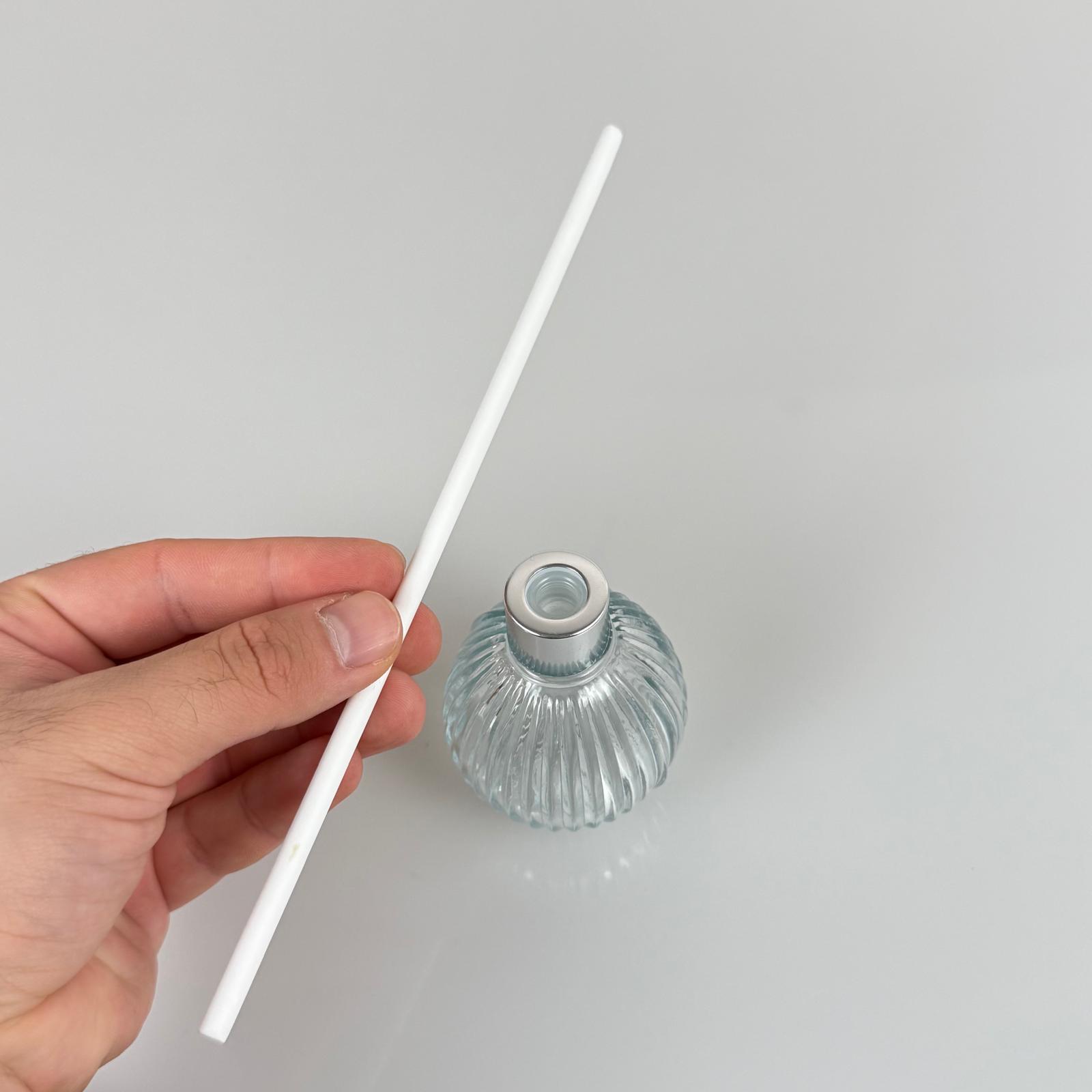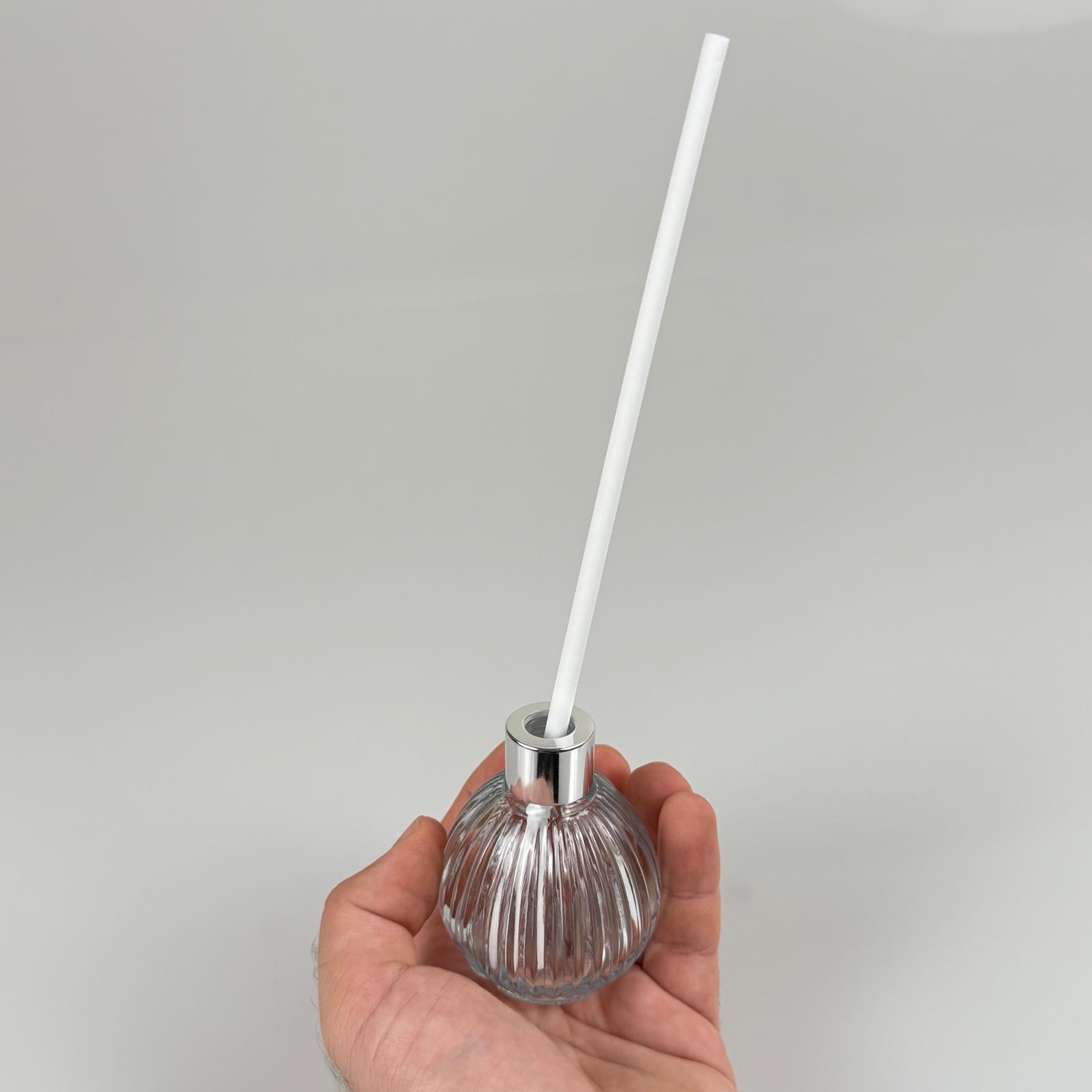 ÇİZGİLİ TOP MODEL CAM BAMBU ODA KOKUSU ŞİŞESİ + METAL GÜMÜŞ KAPAK + TIPA + KALIN BEYAZ FİBER BAMBU ÇUBUK - 50 ML SET TAKIM - HEDİYELİK PROMOSYON DİFFUSER ŞİŞELERİ - 162 adet