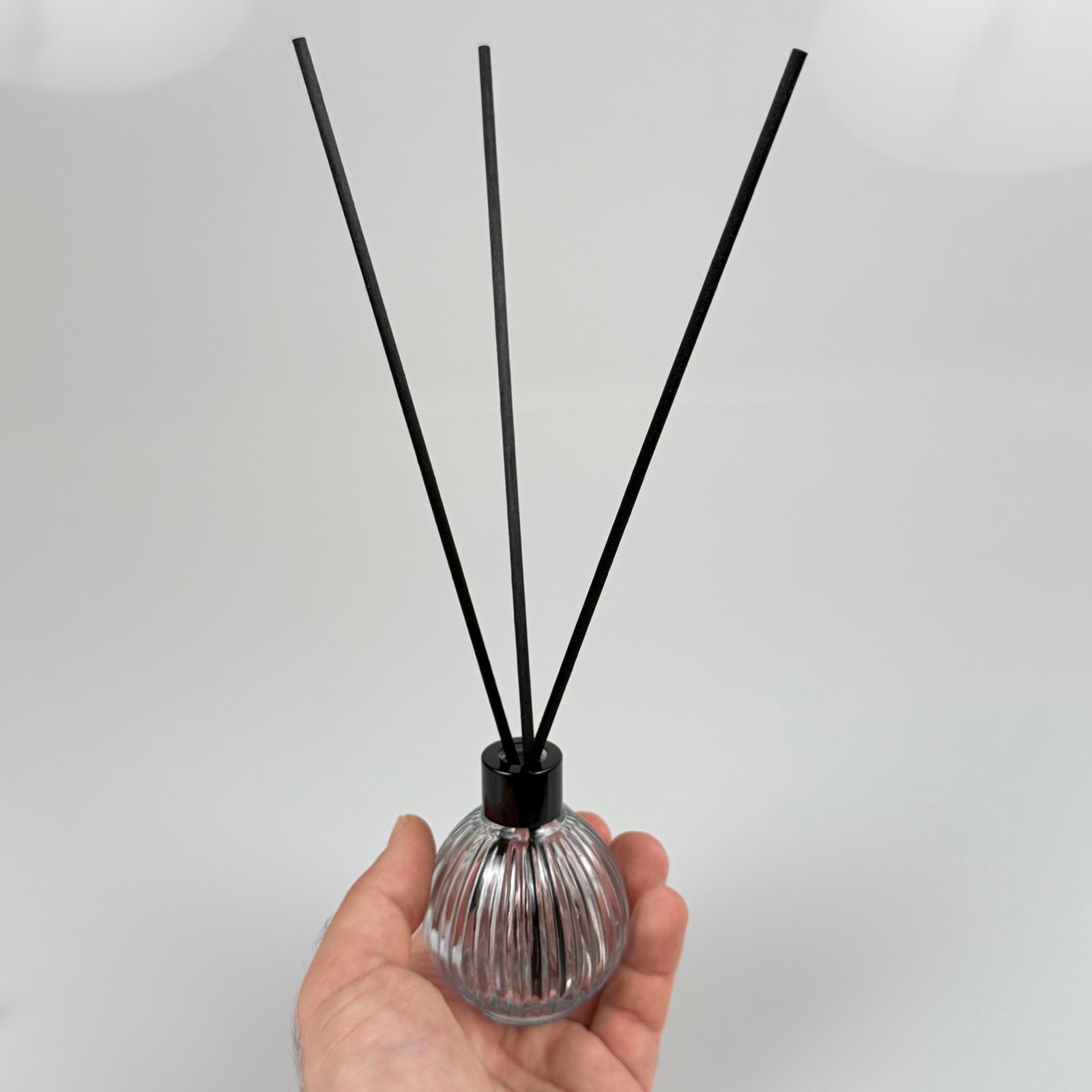 ÇİZGİLİ TOP MODEL CAM BAMBU ODA KOKUSU ŞİŞESİ + METAL SİYAH KAPAK + TIPA + 3 ADET FİBER BAMBU ÇUBUK - 50 ML SET TAKIM - HEDİYELİK PROMOSYON DİFFUSER ŞİŞELERİ - 162 adet