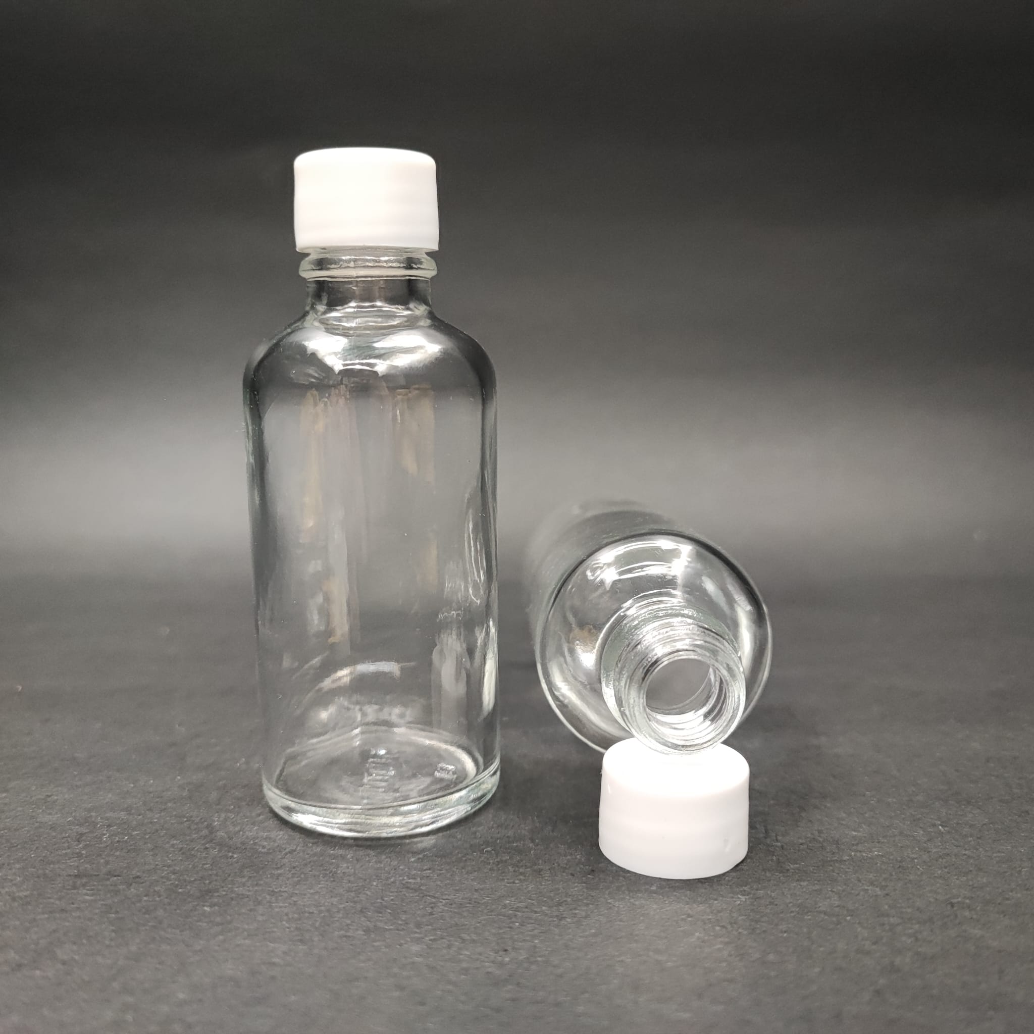 50 CC ŞEFFAF CAM ŞİŞE + KENDİNDEN CONTALI SIZDIRMAZ BEYAZ KAPAK - 50 ML KAPAKLI CAM ŞİŞE - 264 adet