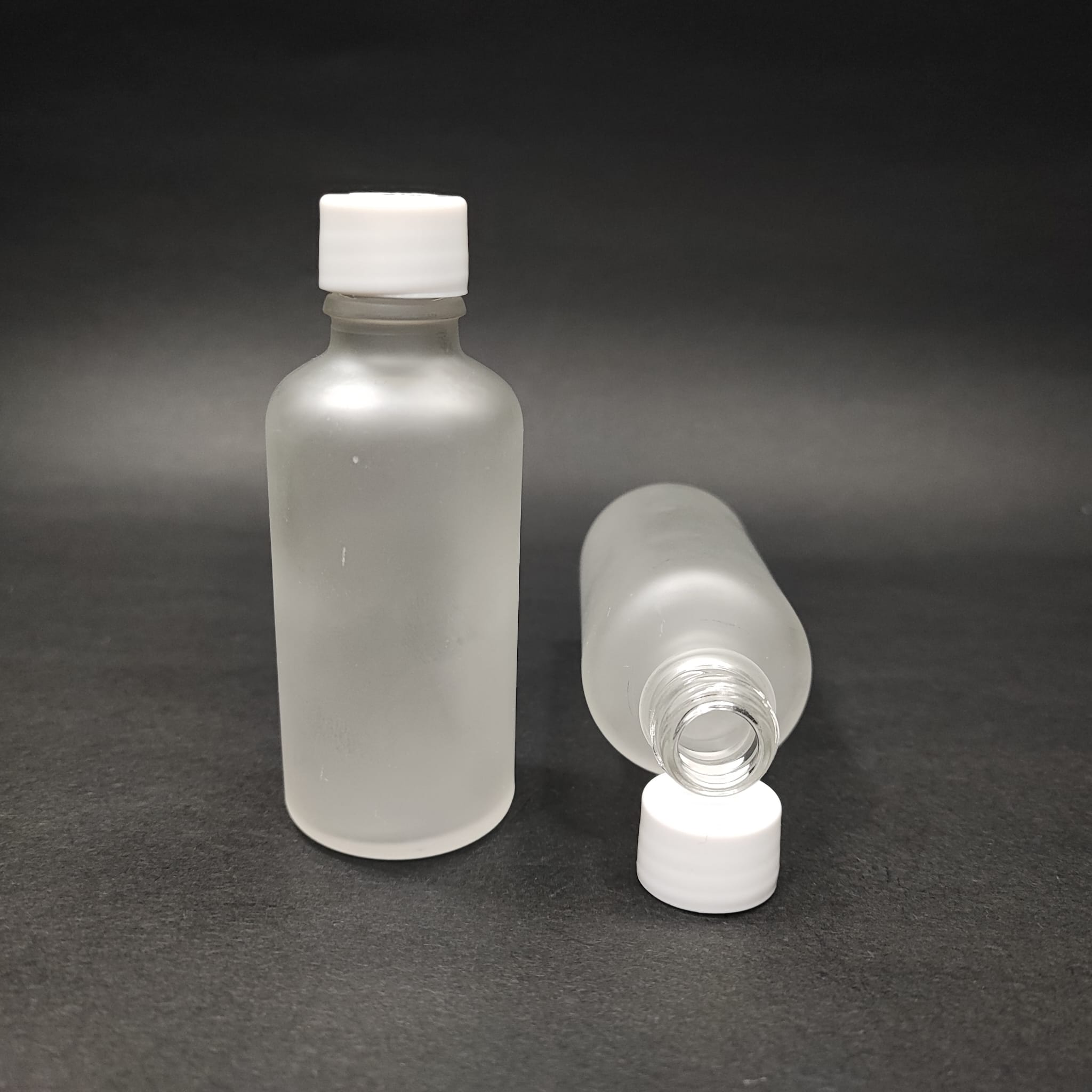 50 CC BUZLU CAM ŞİŞE - BEYAZ PLASTİK VİDALI KAPAKLI - 50 ML BEYAZ KAPAKLI BUZLU ŞİŞE - BUZLU CAM - 576 adet