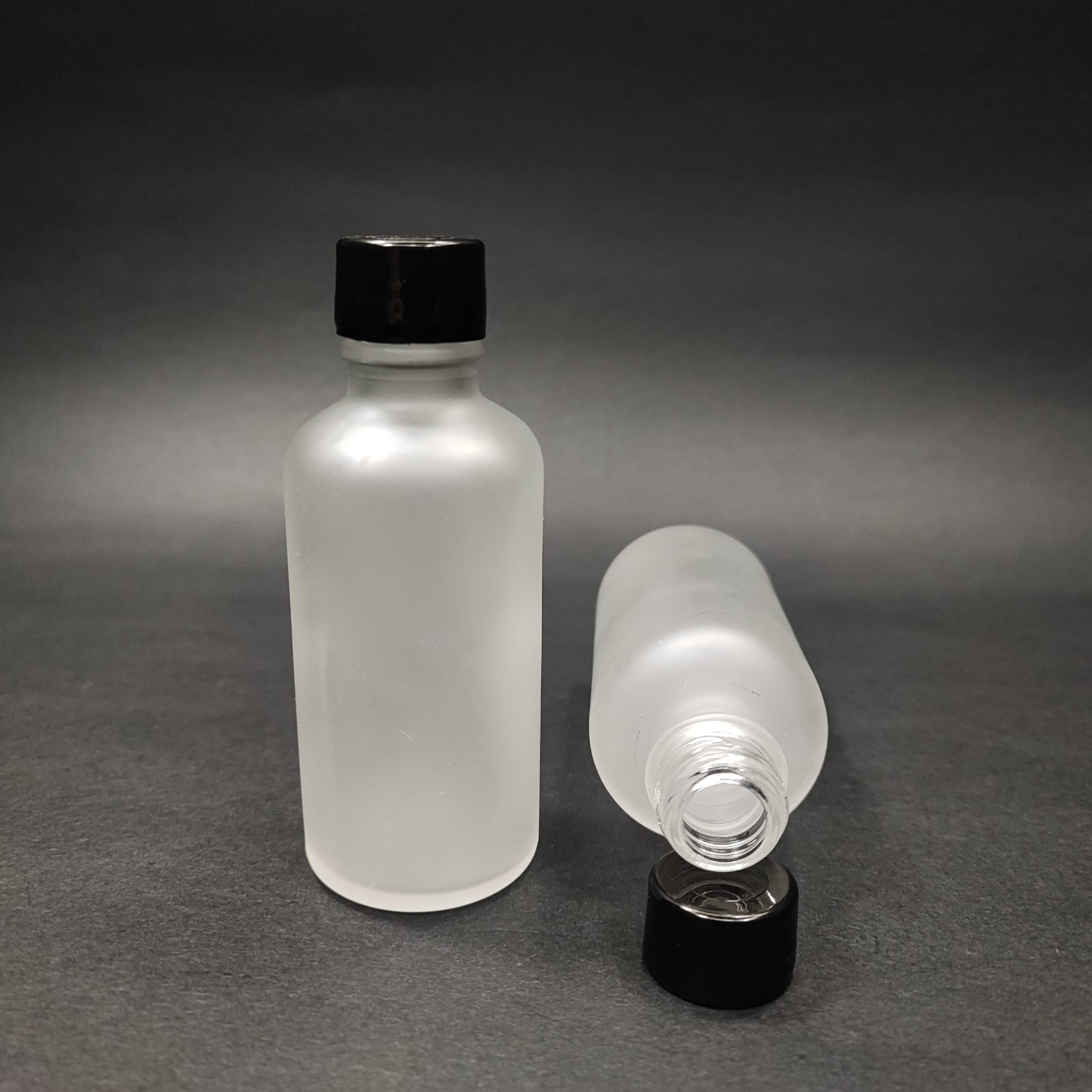 50 CC BUZLU CAM ŞİŞE - SİYAH GÜMÜŞ VİDALI KAPAKLI - 50 ML SİYAH KAPAKLI BUZLU ŞİŞE - BUZLU CAM - 576 adet