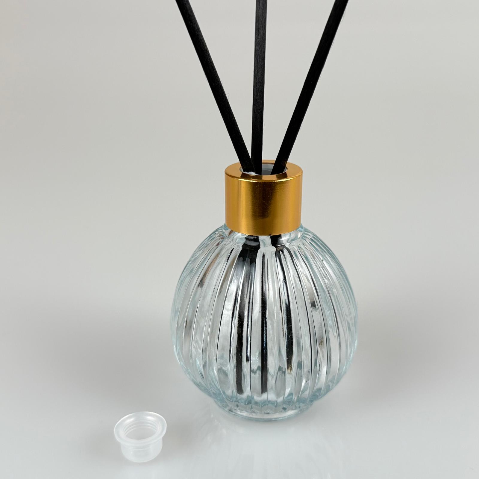 ÇİZGİLİ TOP MODEL CAM BAMBU ODA KOKUSU ŞİŞESİ + METAL GOLD KAPAK + TIPA + 3 ADET FİBER BAMBU ÇUBUK - 50 ML SET TAKIM - HEDİYELİK PROMOSYON DİFFUSER ŞİŞELERİ - 162 adet