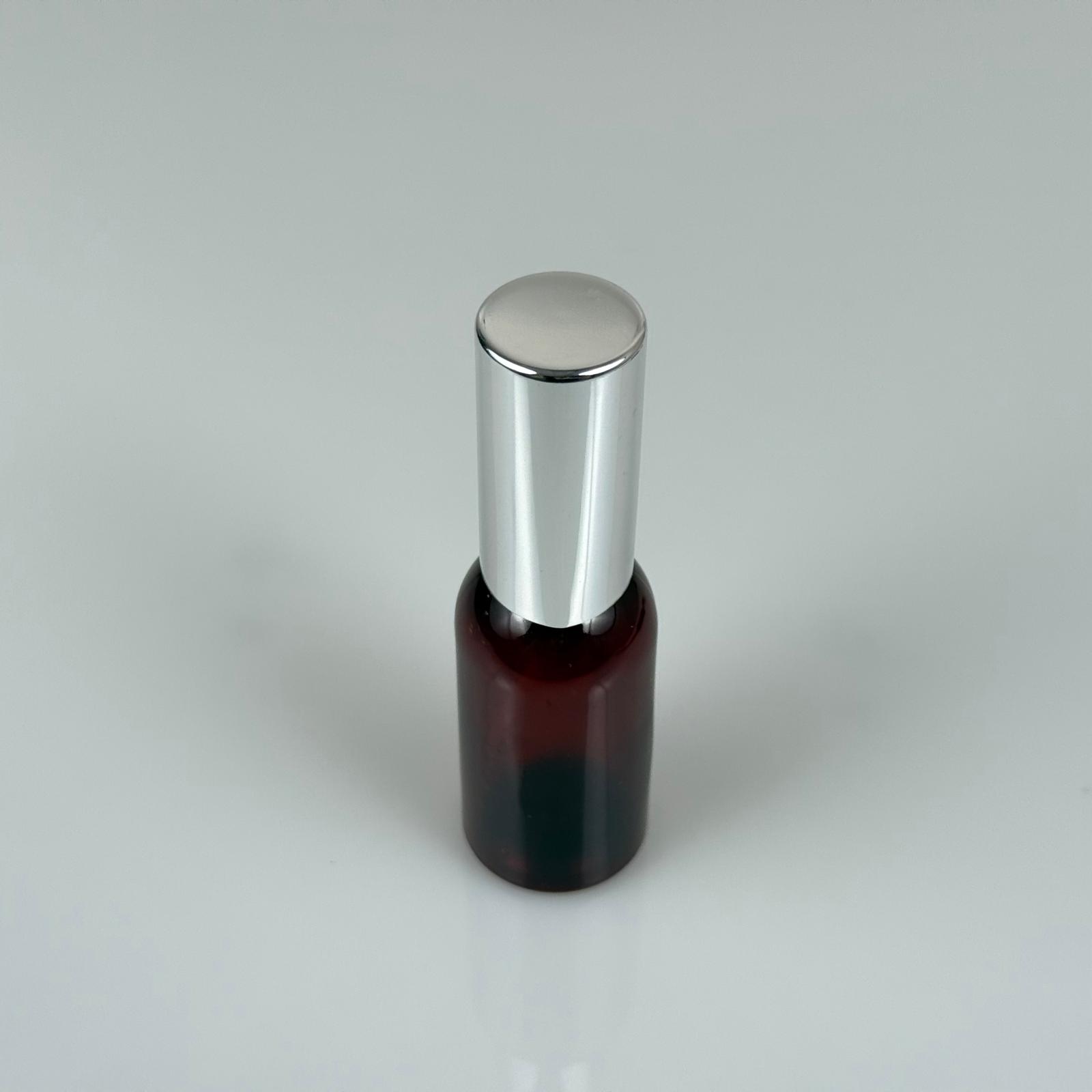 35 ML PET KOLONYA, PARFÜM VB ŞİŞELERİ - METAL ALÜMİNYUM GÜMÜŞ KAPAK + VİDALI SPREY + 35 CC AMBER ŞİŞE SET TAKIM - 1000 adet