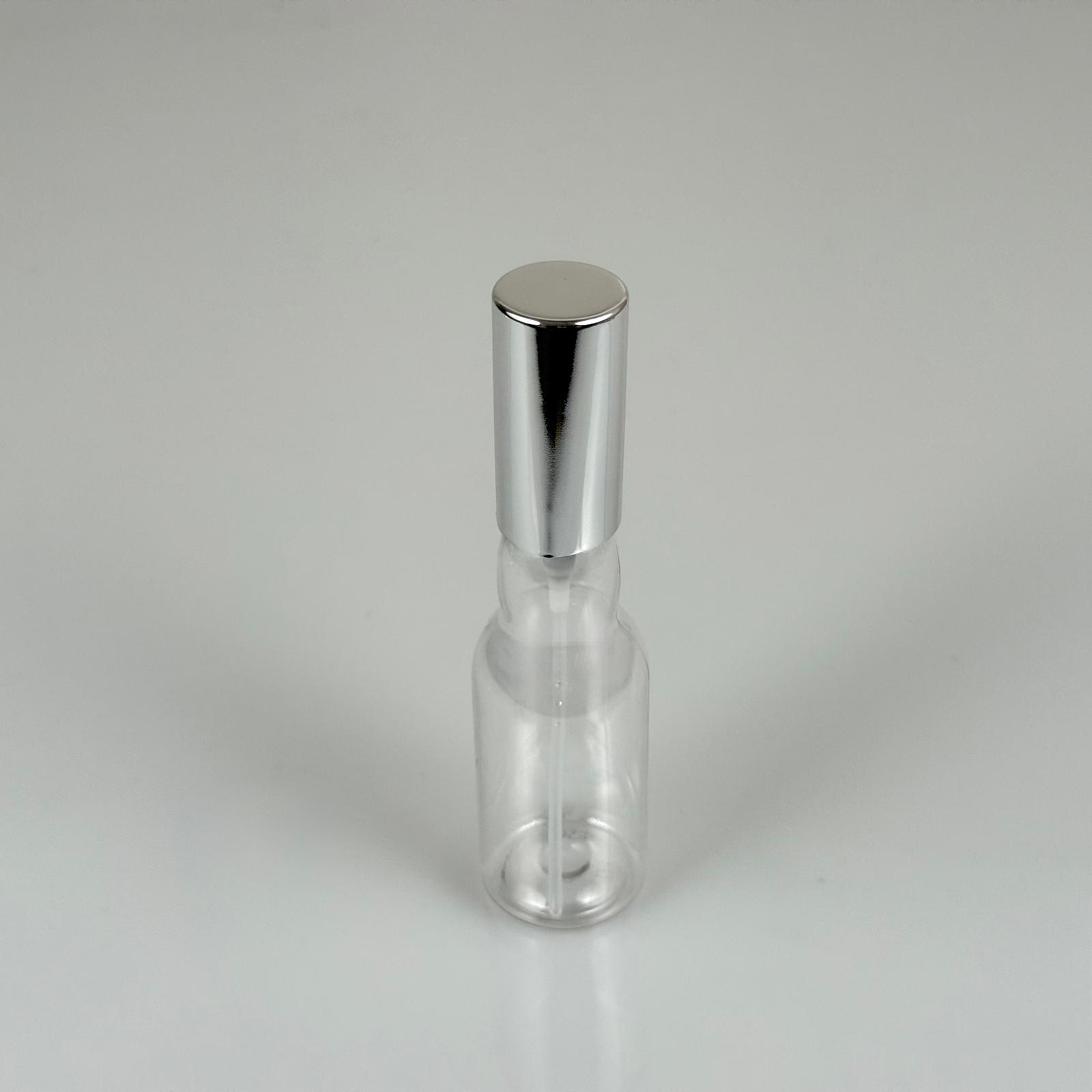 40 ML PET KOLONYA, PARFÜM VB ŞİŞELERİ - METAL ALÜMİNYUM GÜMÜŞ KAPAK + VİDALI SPREY + 40 CC BOĞAZLI ŞİŞE SET TAKIM - 1000 adet