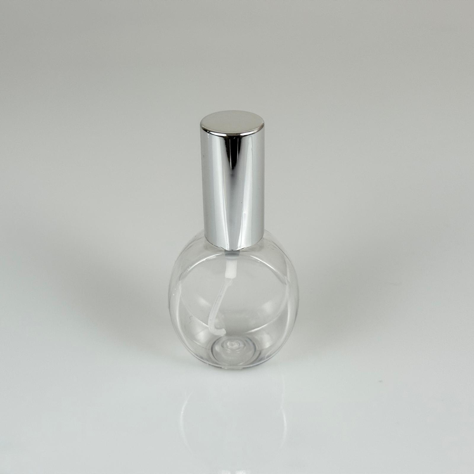 40 ML PET KOLONYA, PARFÜM VB ŞİŞELERİ - METAL ALÜMİNYUM GÜMÜŞ KAPAK + VİDALI SPREY + 40 CC YUVARLAK ŞİŞE SET TAKIM - 1000 adet